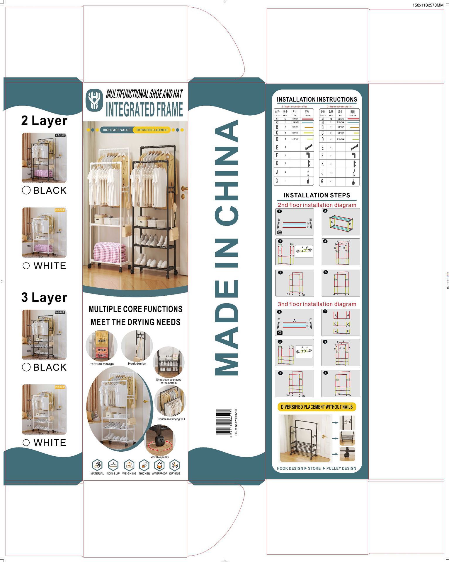 【商品名称】YH6619 Multi-functional Hat and Coat Rack