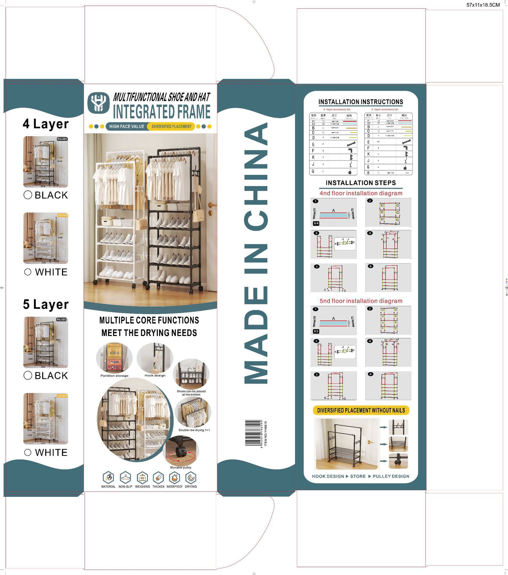 【Product Box Specifications】Length, Width, and Height: 1 Layer - 58.5cm x 48cm x 43cm / 2-3 Layers - 58.5cm x 47cm x 48cm4-5层 58.5*58*40cm