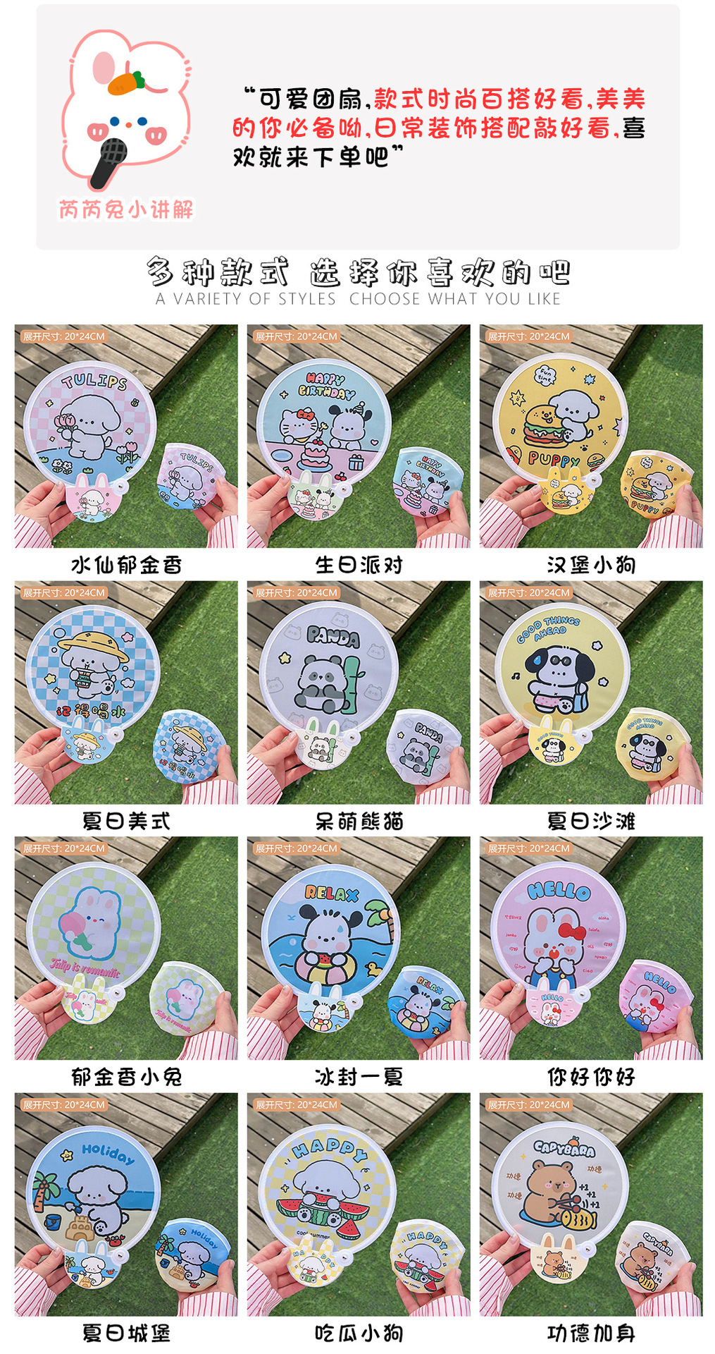 tulip bunny-folding small round fan