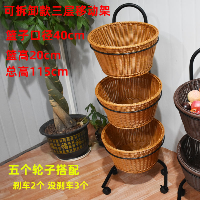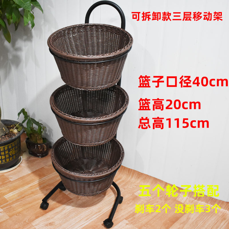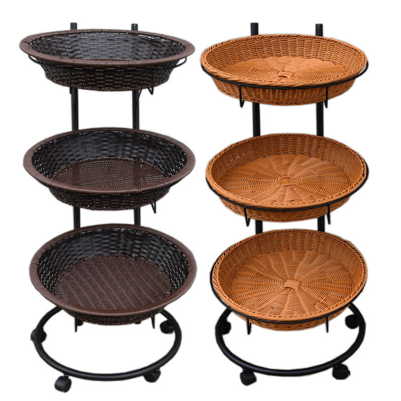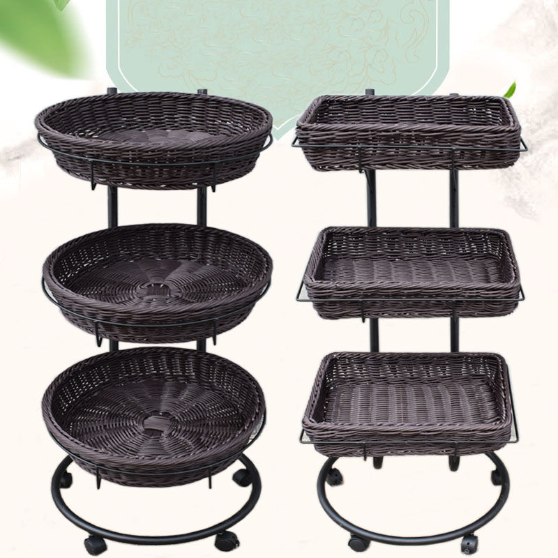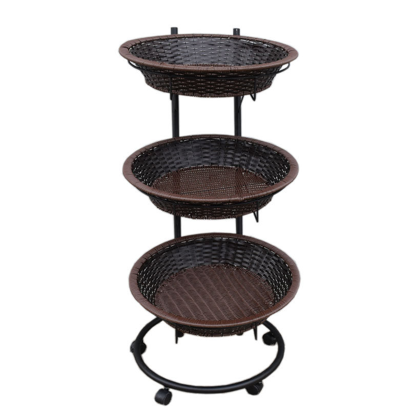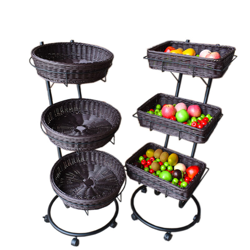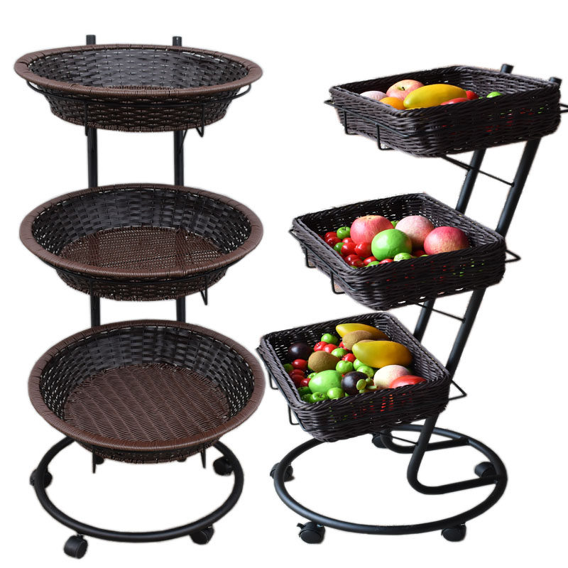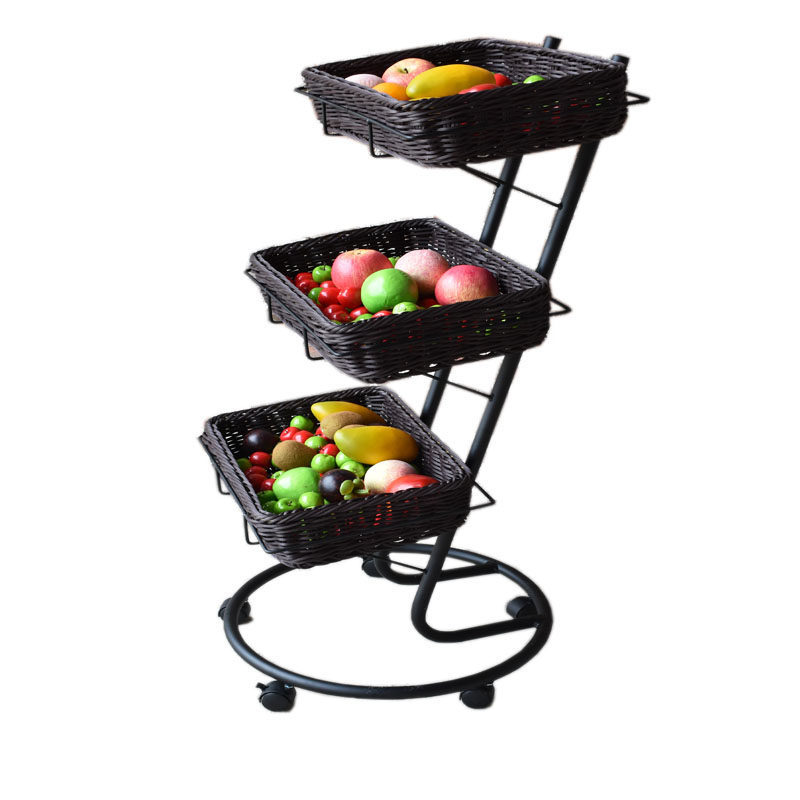New models are available with a three-tier fruit roller mobile shelf display basket.