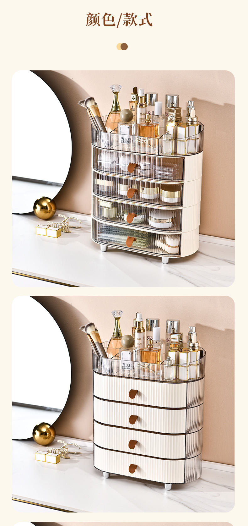 transparent top + cream drawer