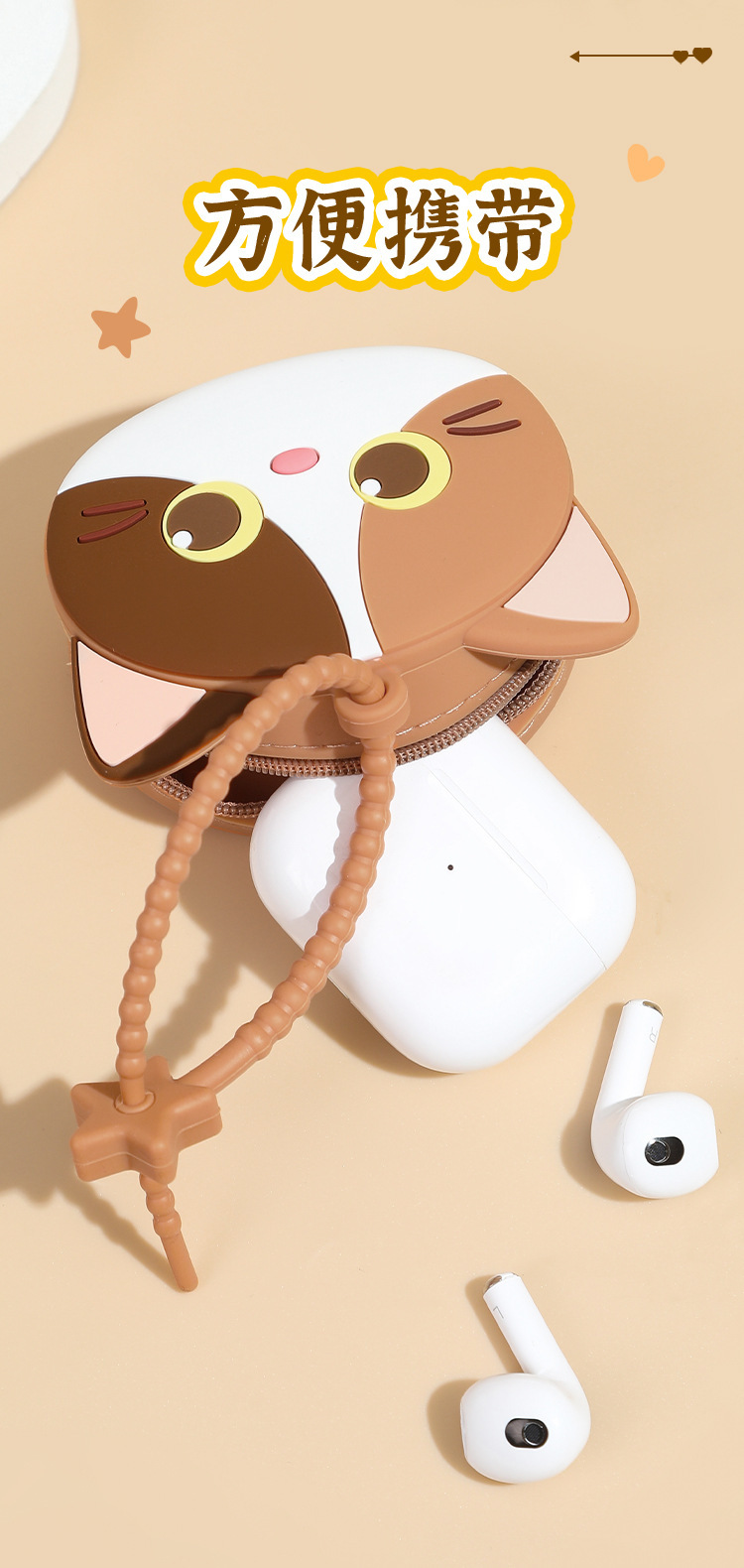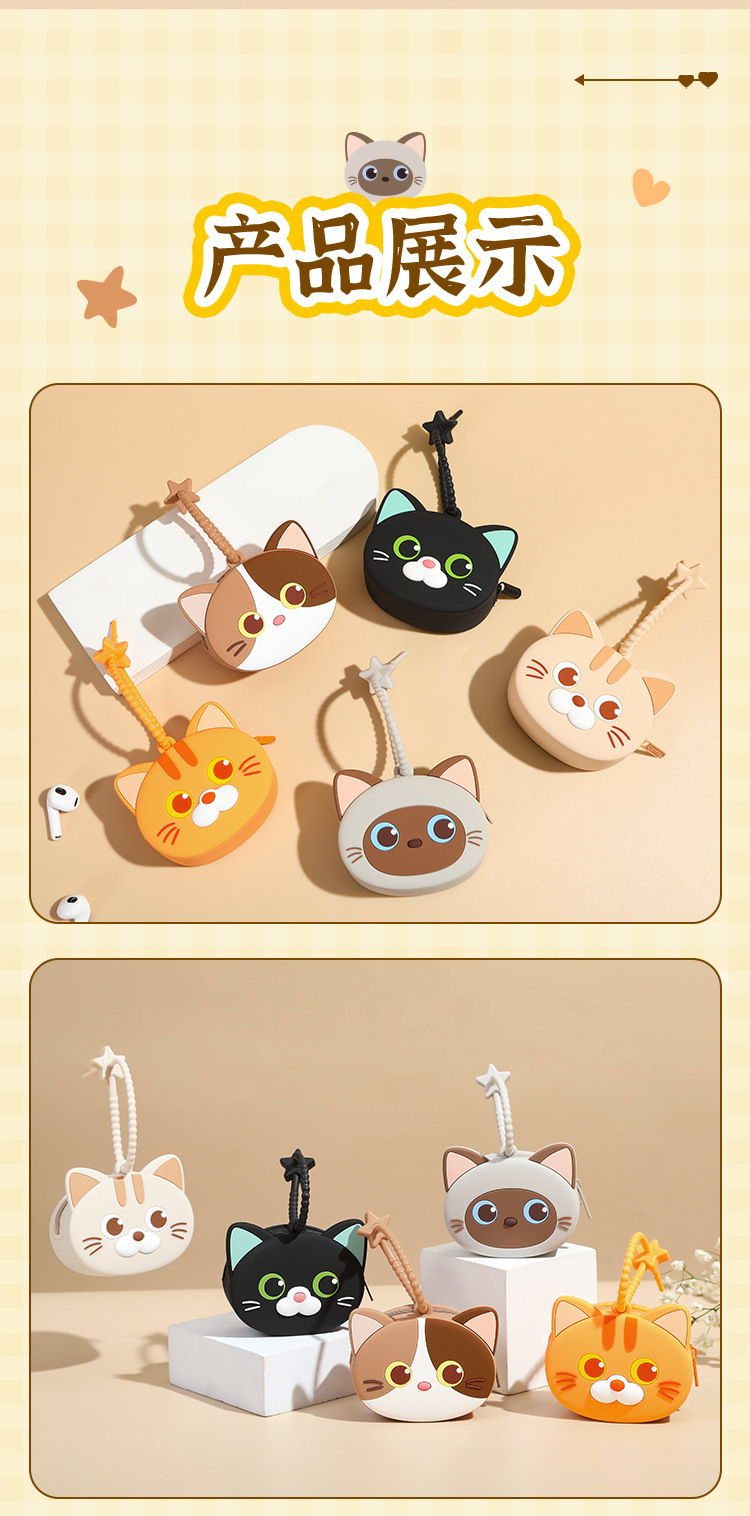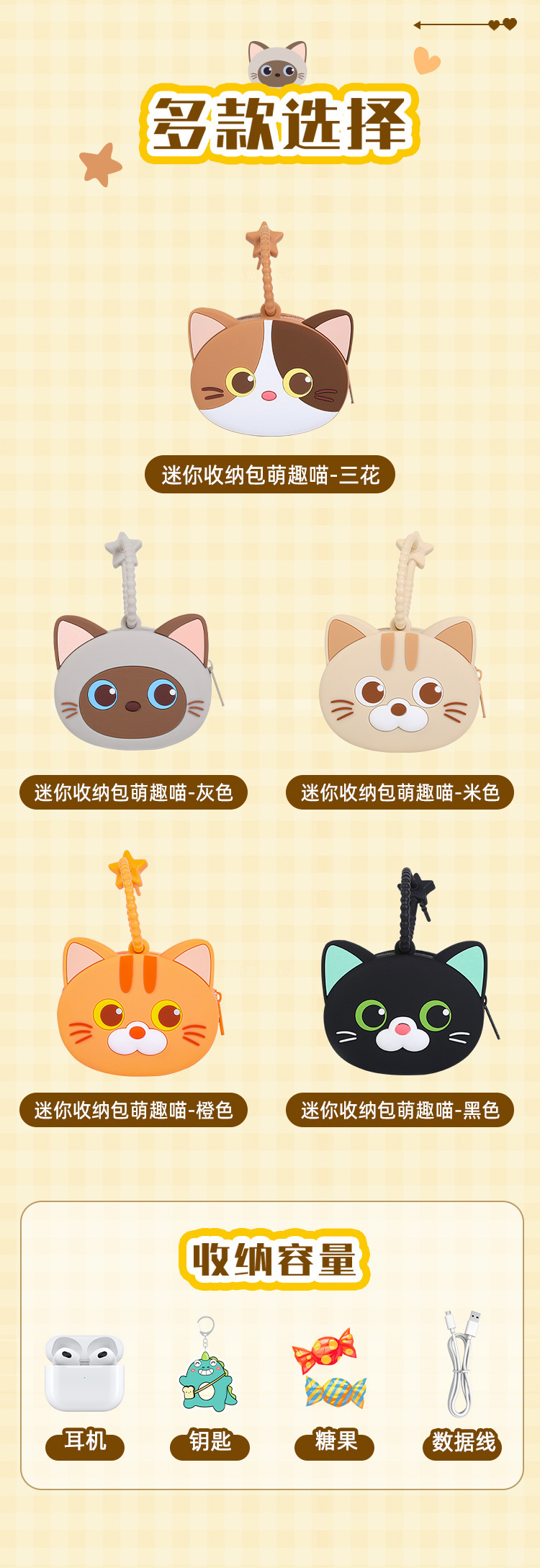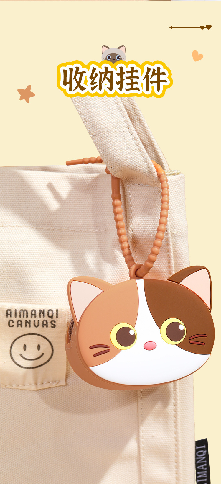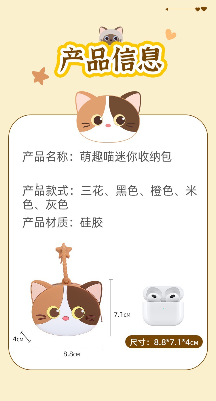 mini storage bag cute meow-beige