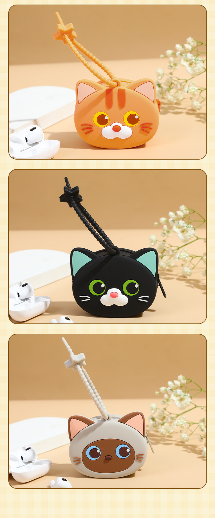 mini storage bag cute meow-three flowers