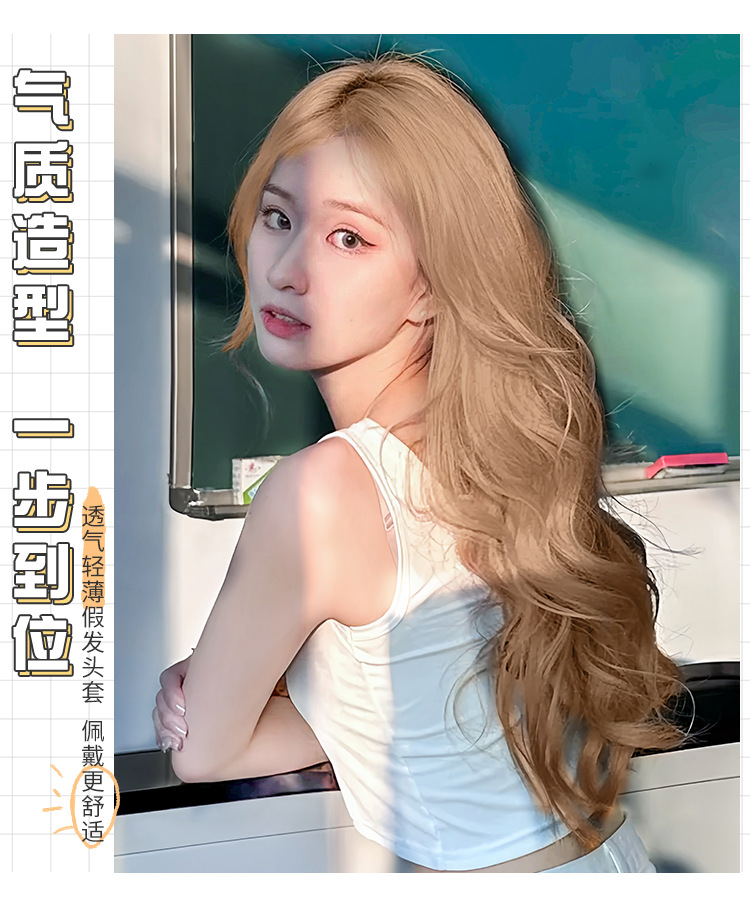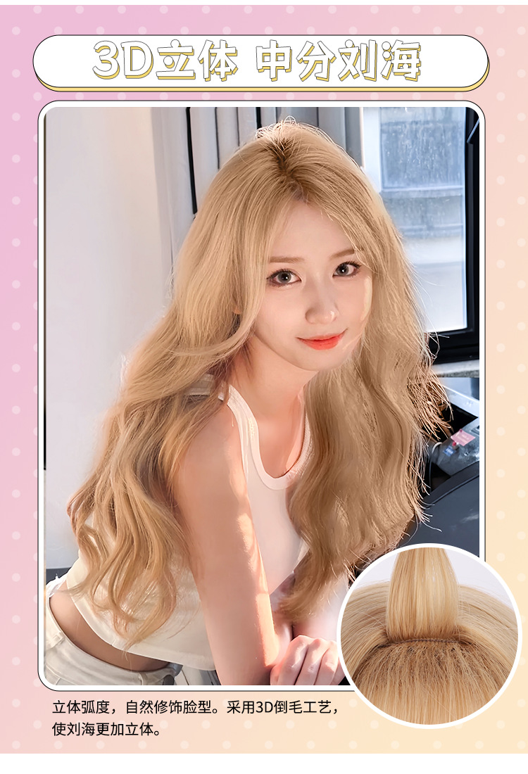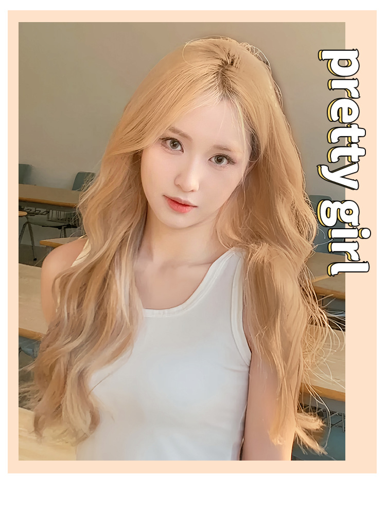 milk tea golden woven eight-character bangs curly hair