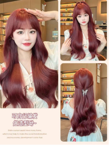 raspberry red woven eight-character bangs curly hair