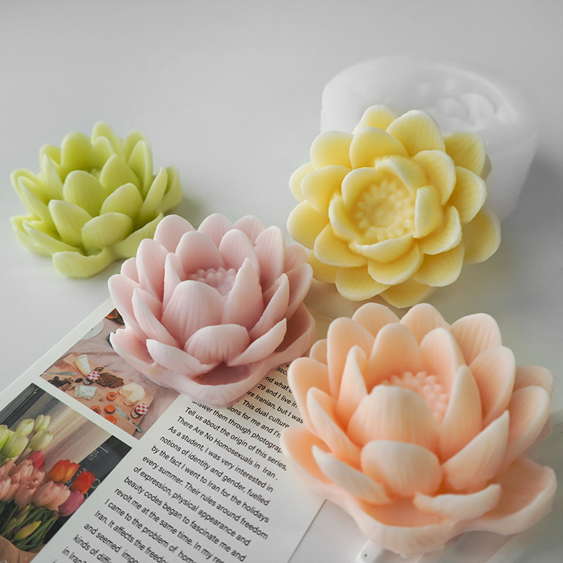 Tee-Dimensional Flower Silicone Mold Lotus Aromatherapy Candle Pster Epoxy Handmade Soap Fondant Cake Decoration Abrasive Tool