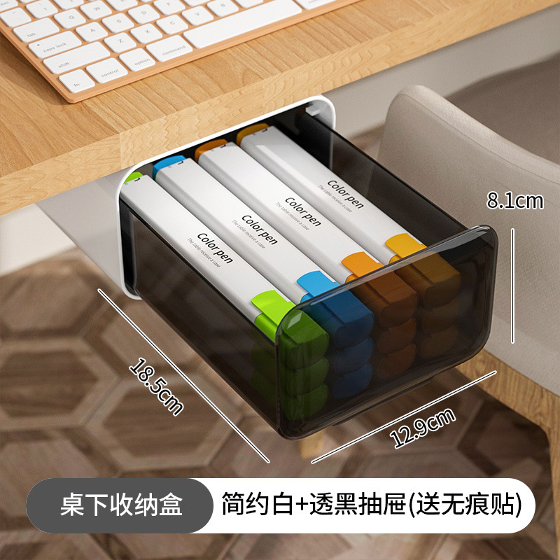 pull under the table storage box-white + transparent black draw [give 2 pieces of adhesive]]