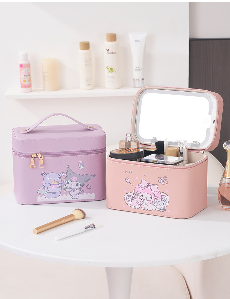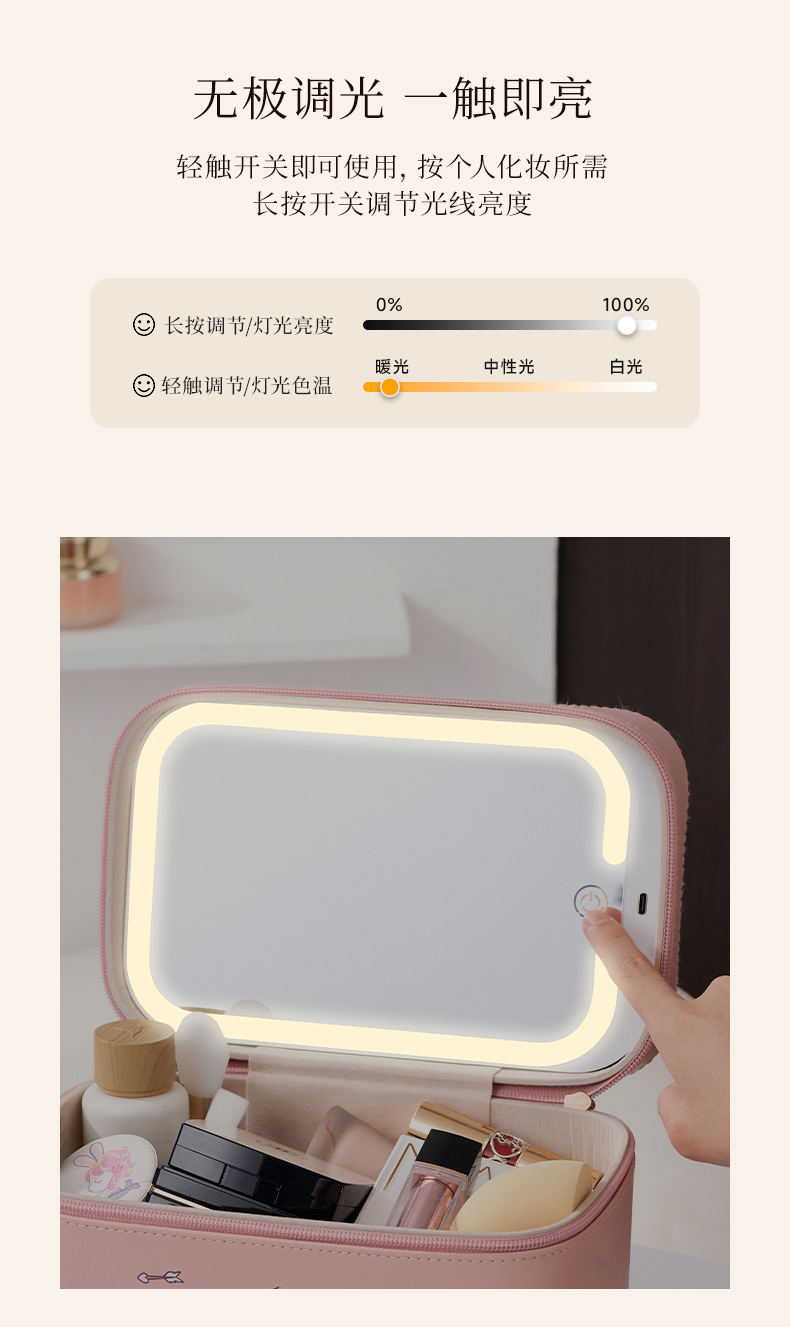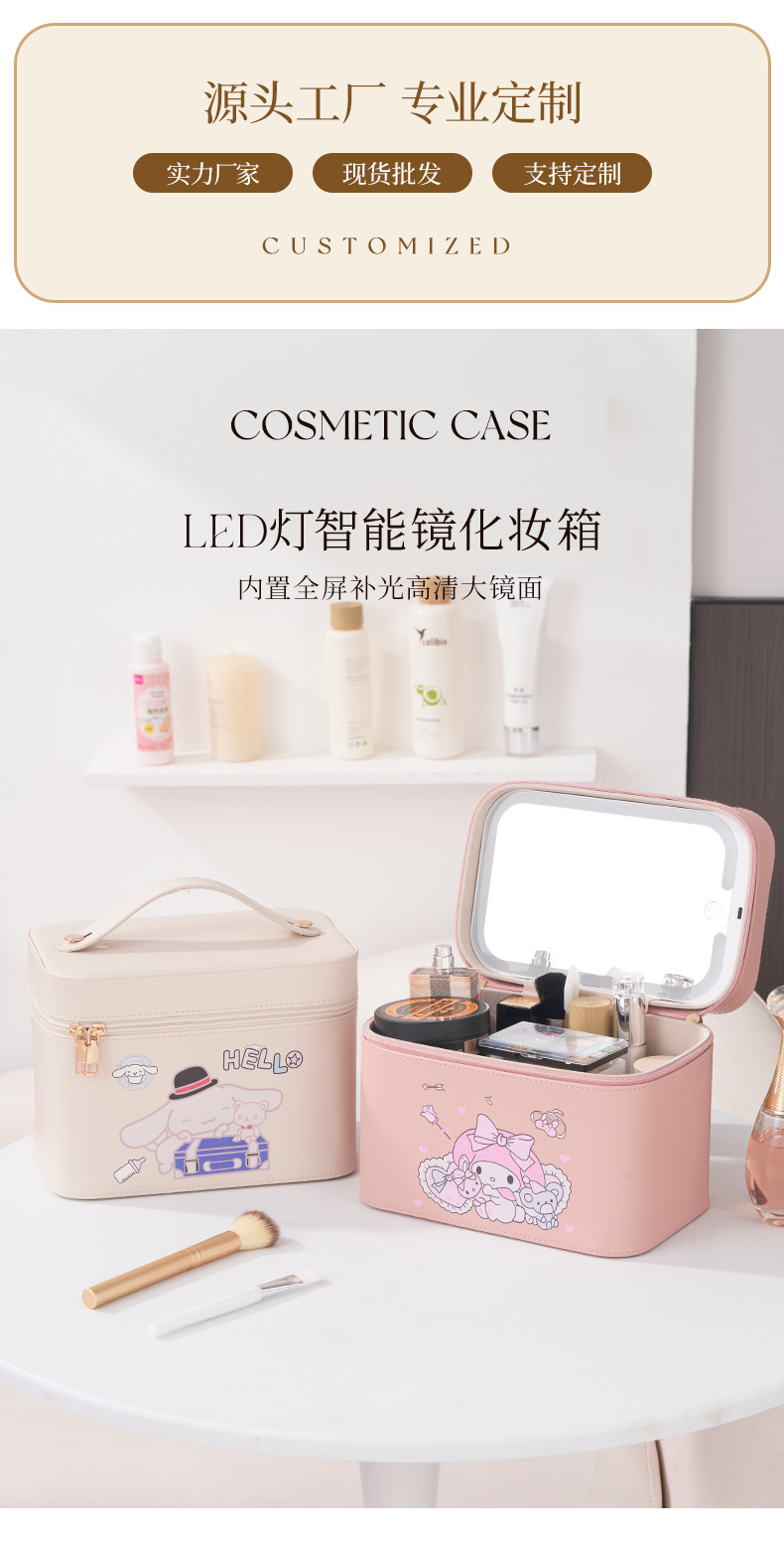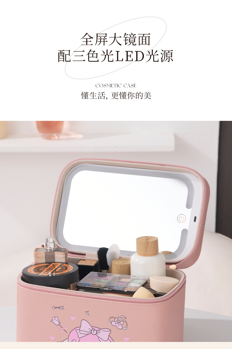2024 New LED Cosmetic Case with Light Internet Celebrity with Light and Mirror Cosmetic Bag Professional Portable Makeup Storage Bag