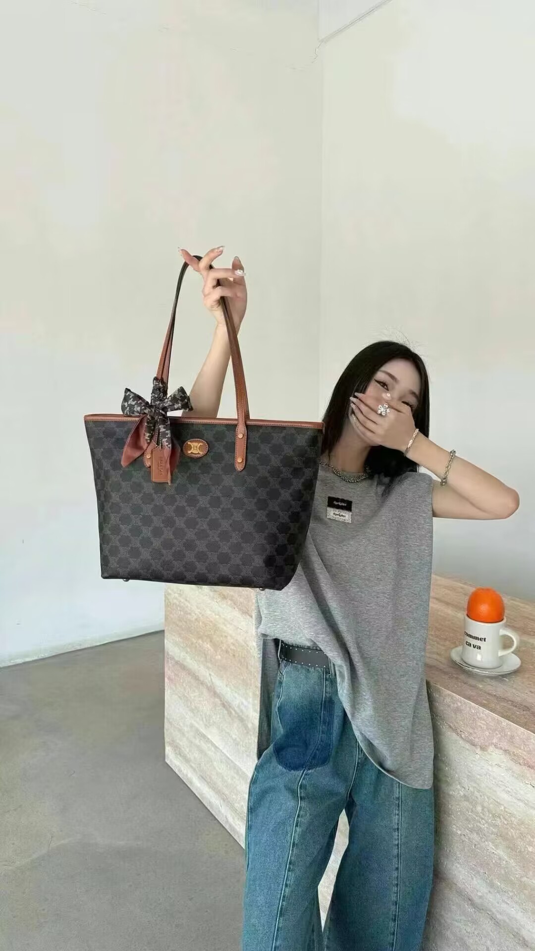 rge Capacity Commuter Tote Women's 2024 Autumn and Winter New Advanced 8059-2 Printed Big Bag Fashion Versatile
