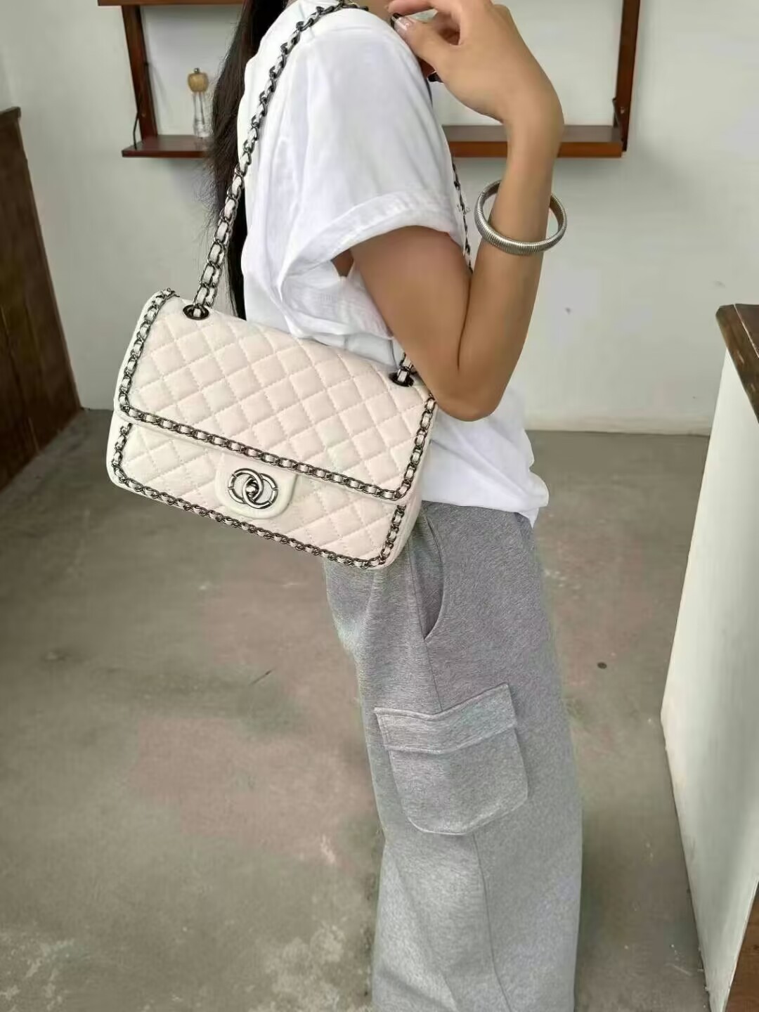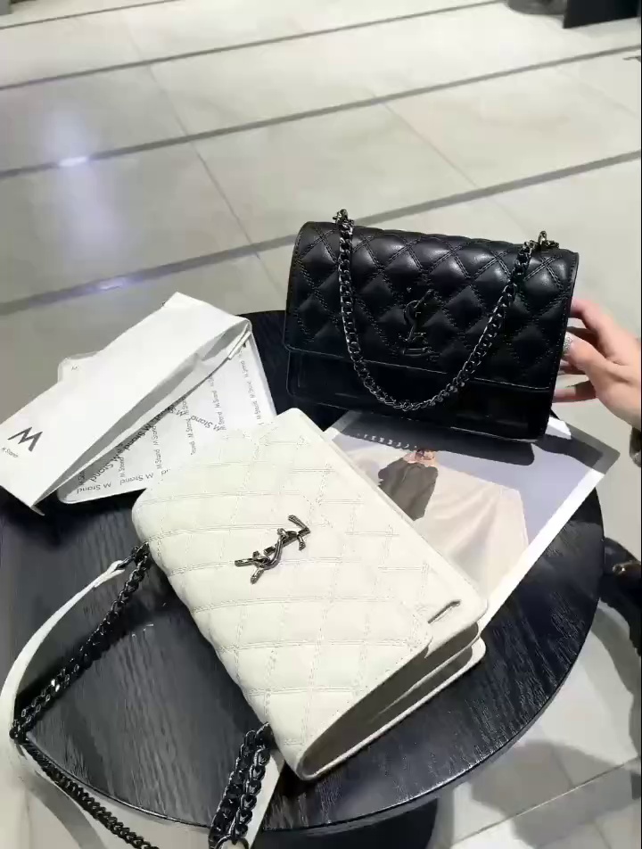 Genuine Leather Spring and Summer Bags 2024 New Fashion Internet Celebrity Cssic Style Single Shoulder Crossbody Rhombus Chain Bag Simple All-Match