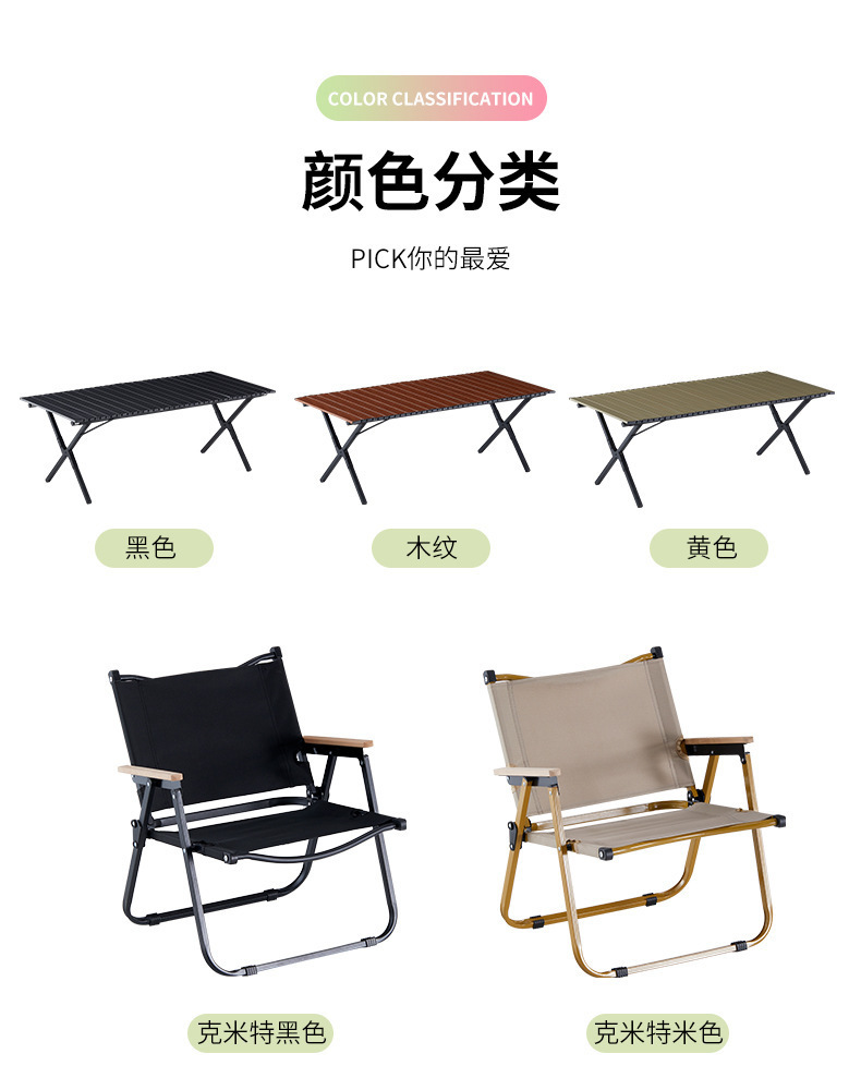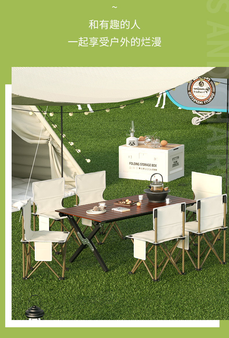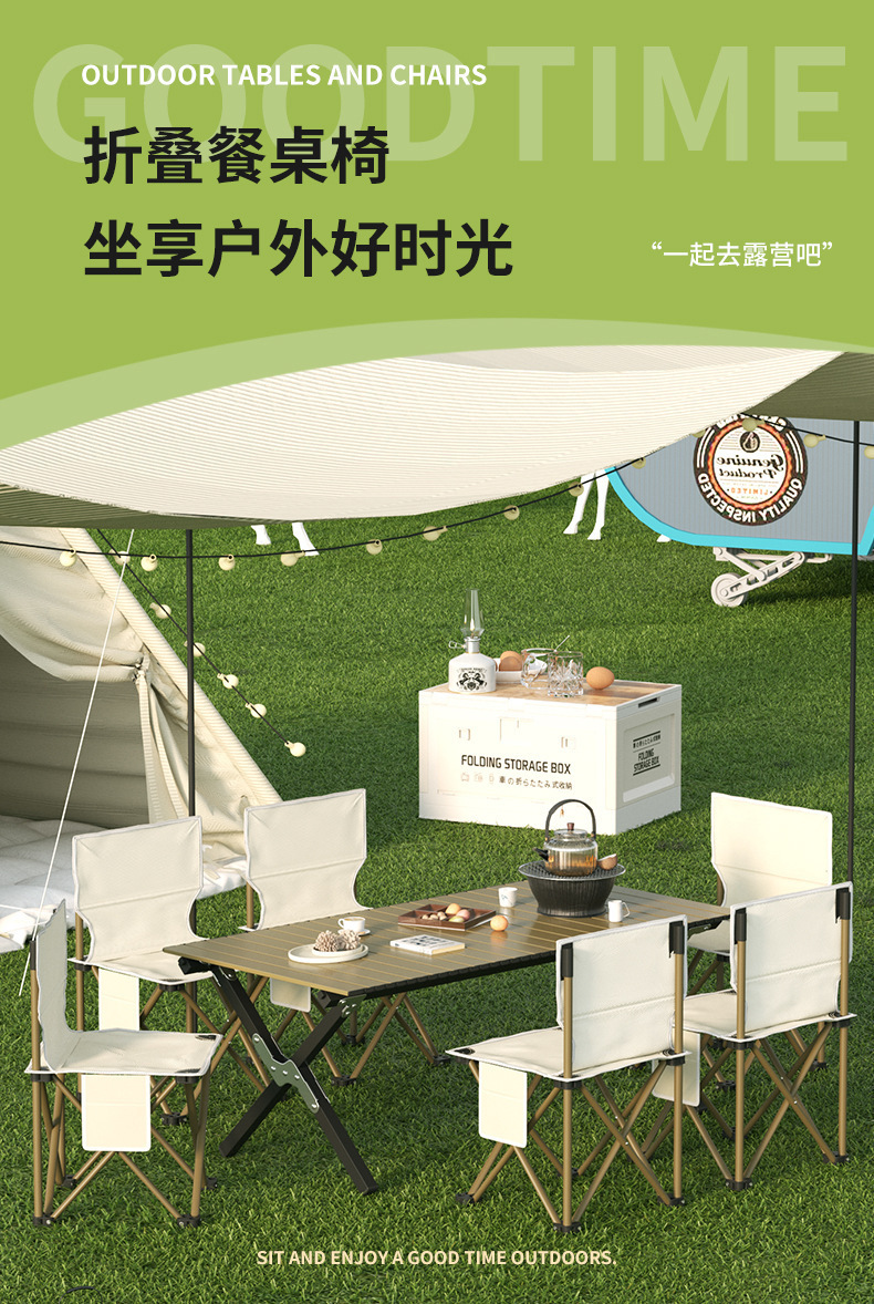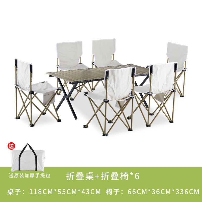khaki 120 long table 7-piece set