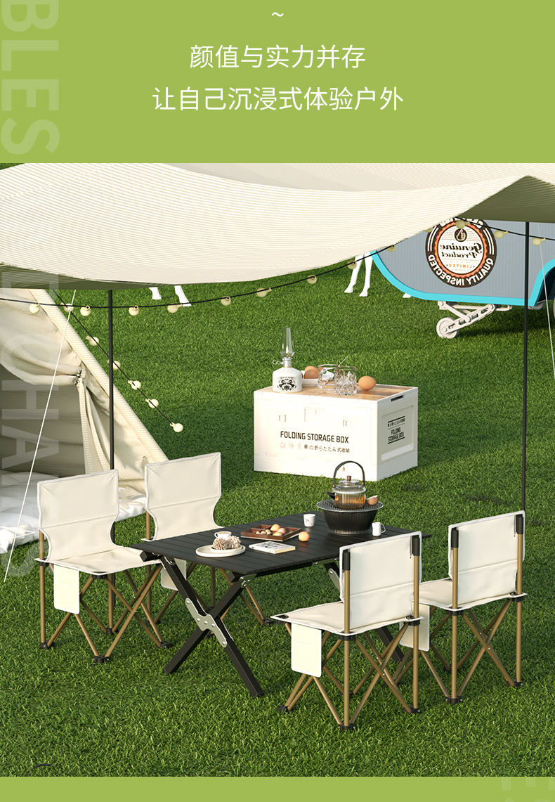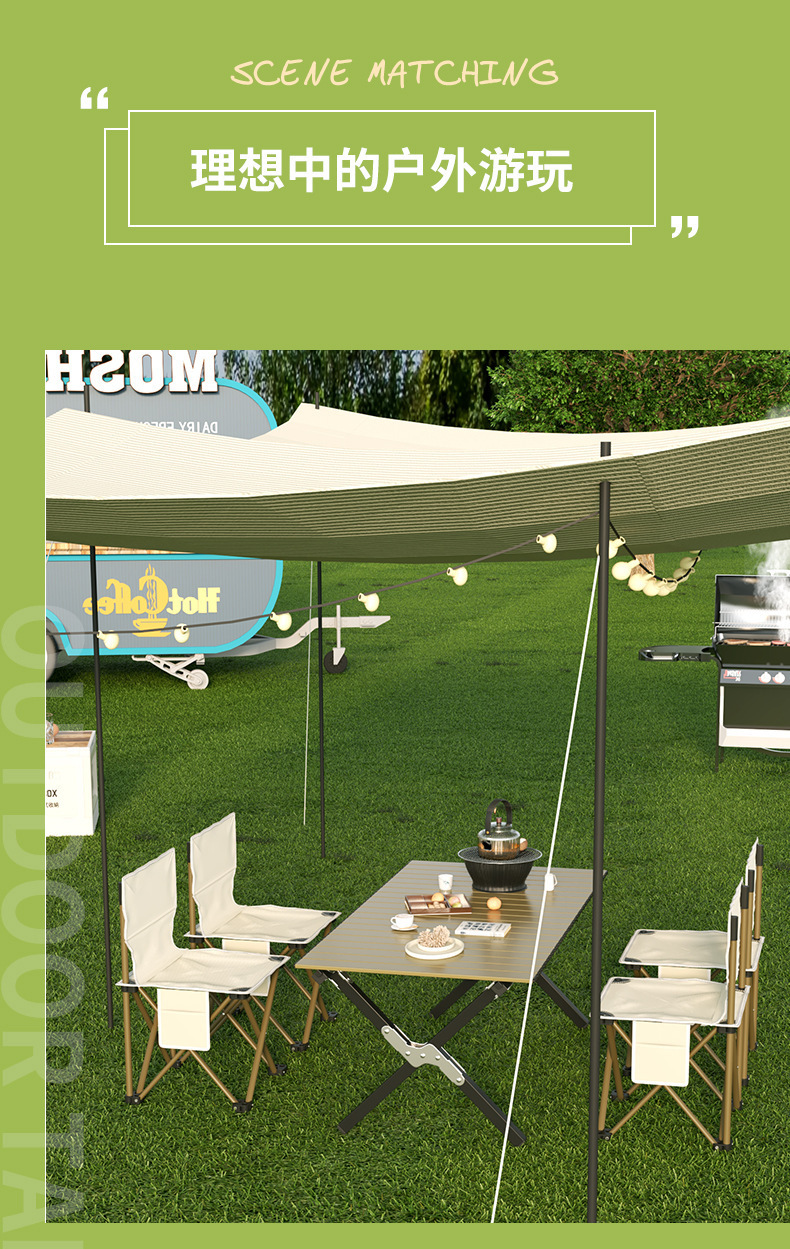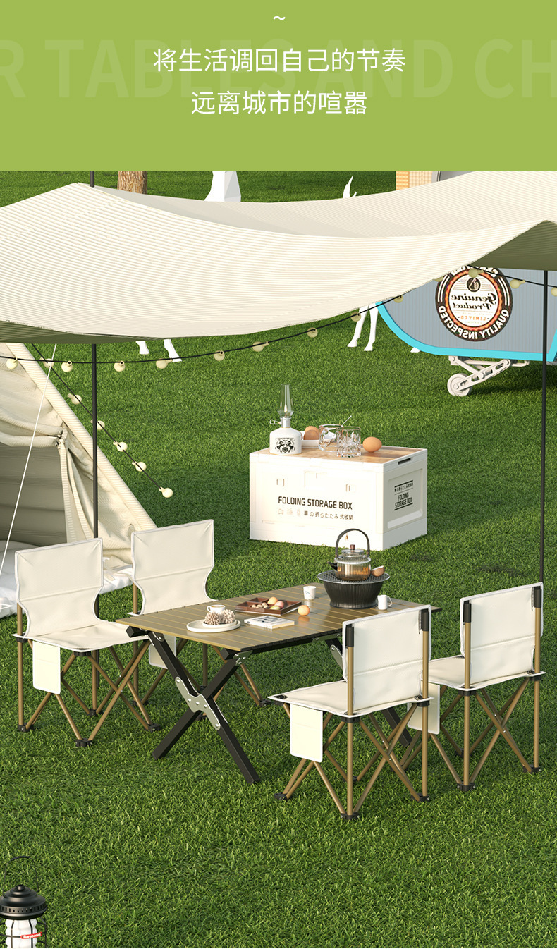 khaki 120 long table 7-piece set