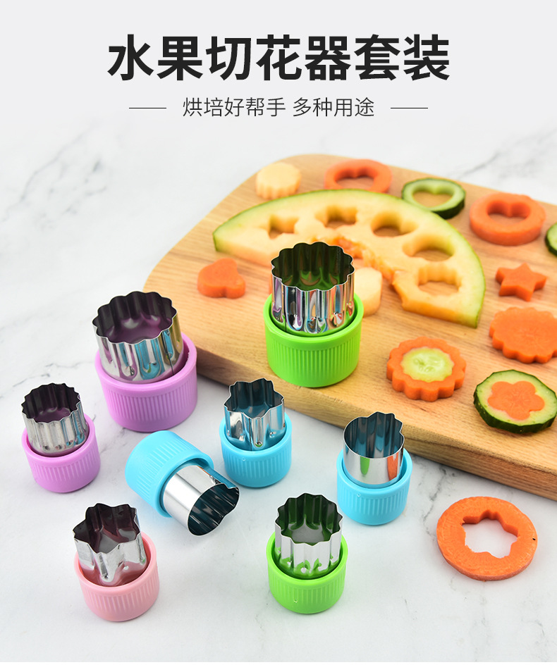 Stainless Steel Fruit Cutter Eming Mold Small Wonton Biscuit Mold Vegetable Cutter Flower Ware Farfalle Tools 8-Piece Set