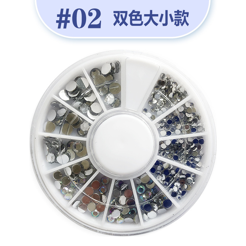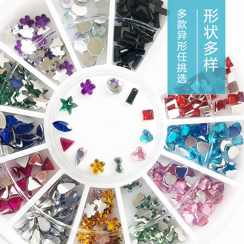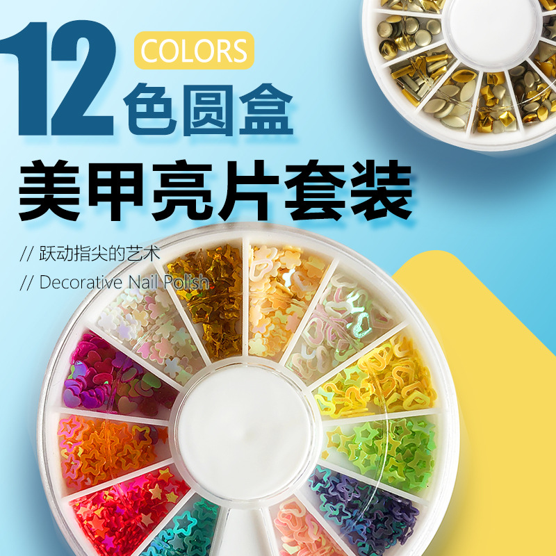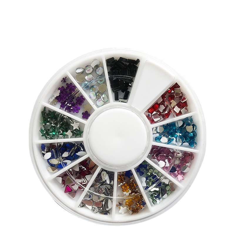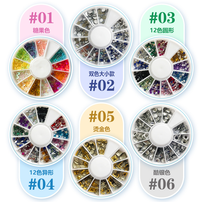 Cross-Border Hot Sale 12 Grid Disc Boxed Shaped Color Acrylic Bottoming Drill Nail Art DIY Golden Rivet Ornament