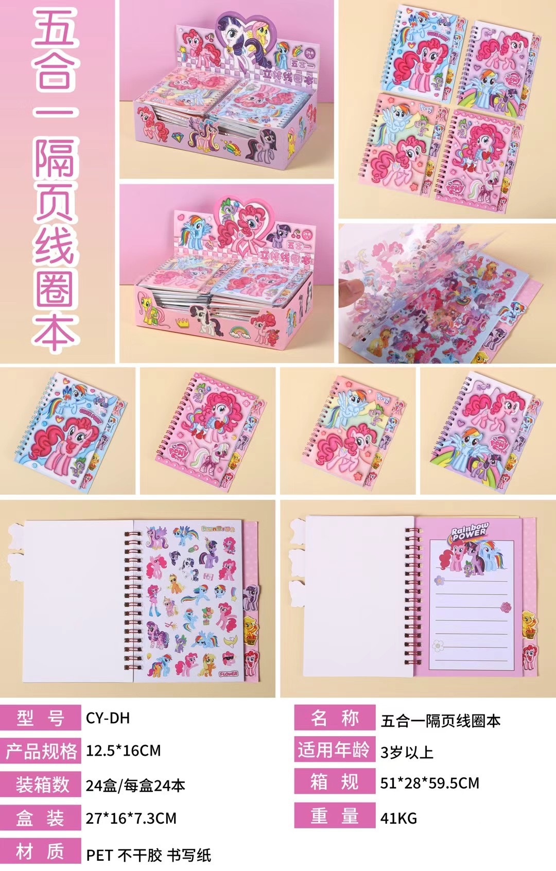 my little pony stickers coil notebook randomly mixed 24 copies/box