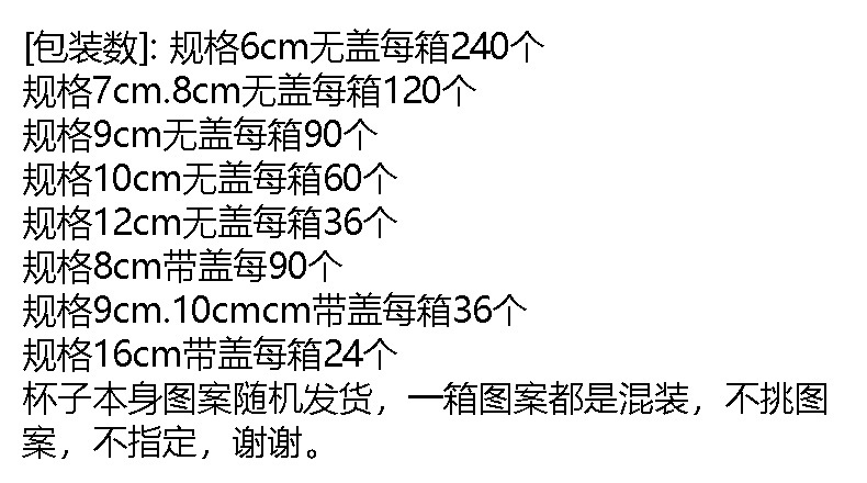 | 6cm150ml random quotation without cover | CN¥ 1.46 | 9874619 piece available |