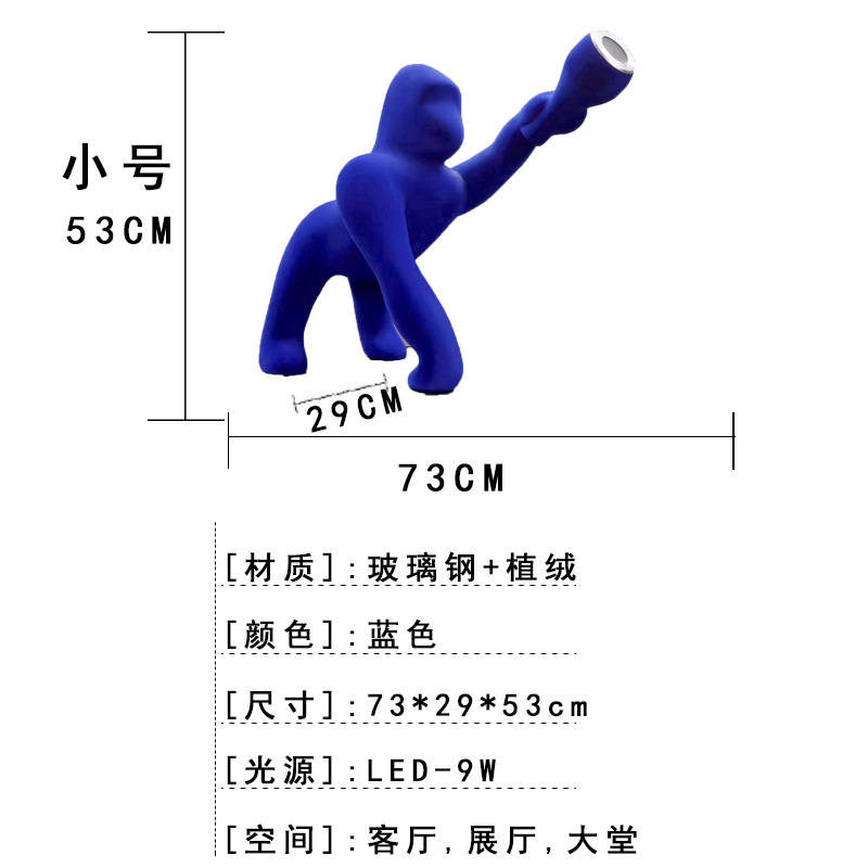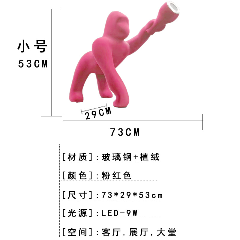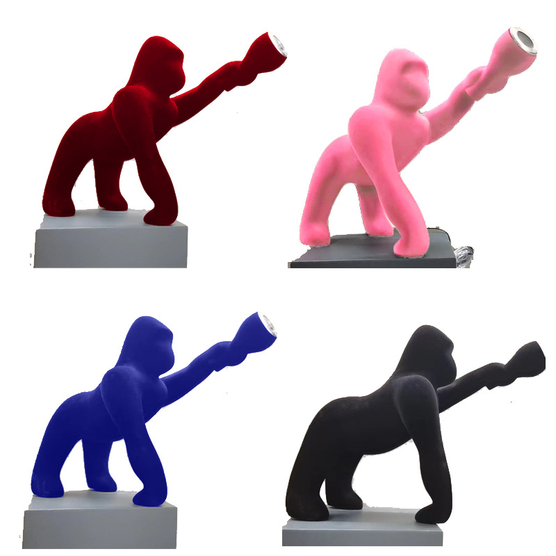 plush qeeboo flocking gorilla sculpture floor lamp animal decoration exhibition hall hotel sample room decorative lamp
