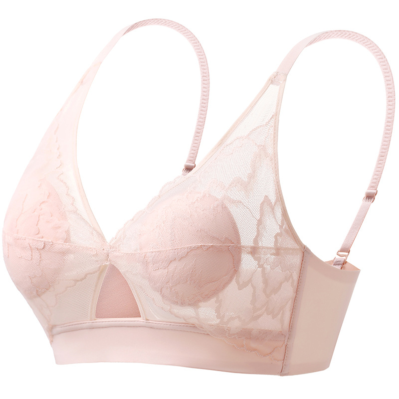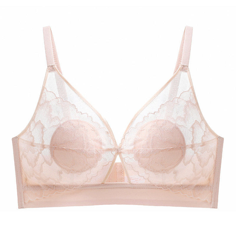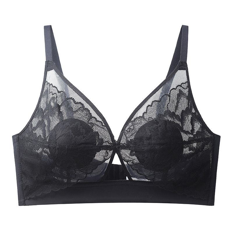 summer ultra-thin breathable underwear women's big chest small without steel ring gathering bra breast holding adjustable lace bra