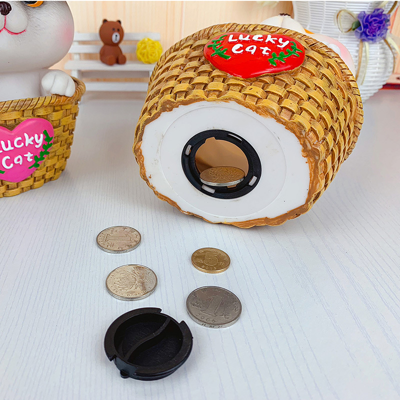 Creative student gift savings jar with a rural style, cute bamboo basket cat rubber, drop-resistant money saving jar, home decor.
