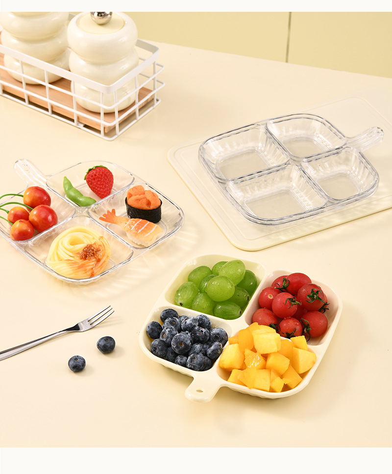 Product Name: Four-Compartment Serving Plate with Handles - Snack and Fruit Plate - Children's Dinner Plate - Transparent White