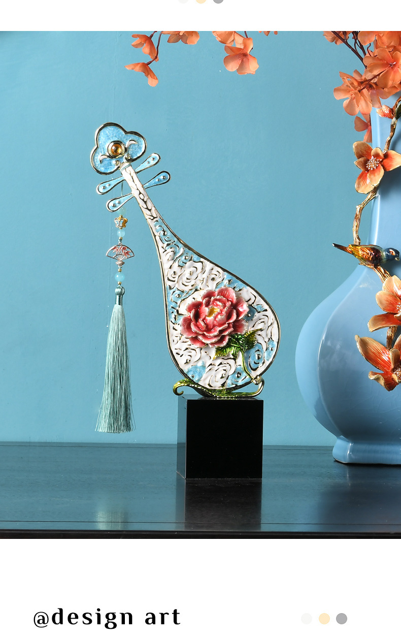 classical pipa decoration enamel color rich ronghua peony crafts retro new chinese style american style furnishings ornament