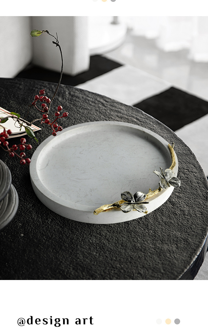 nordic minimalist style marble tray display plate bathroom wash basin light luxury storage tray round storage plate