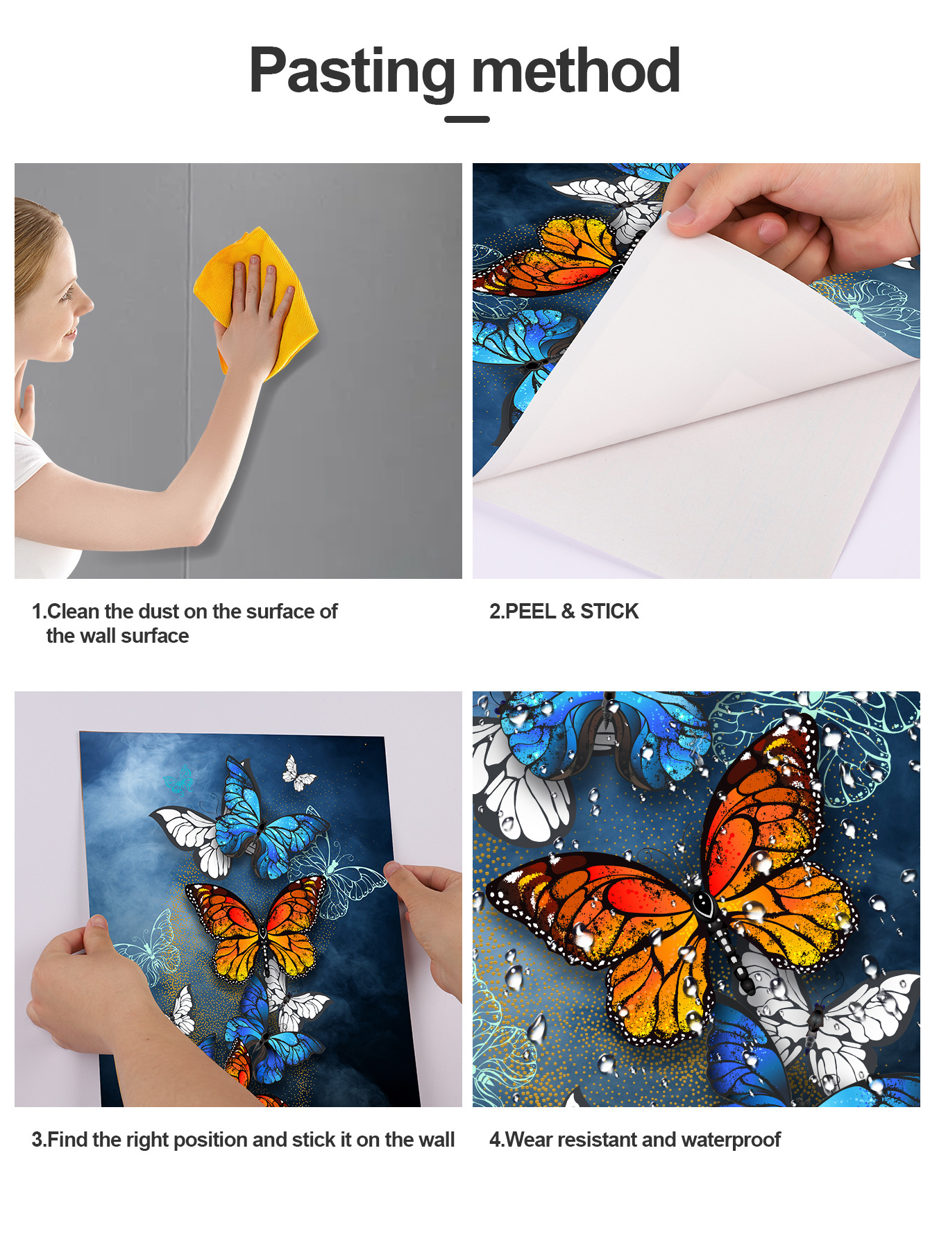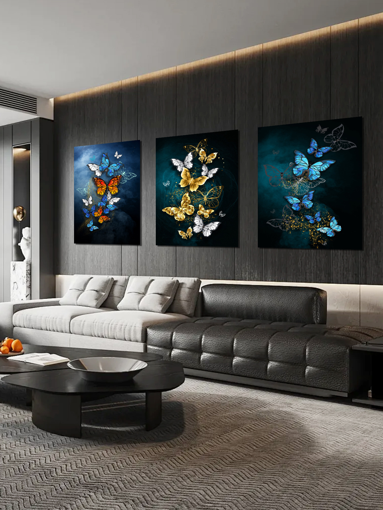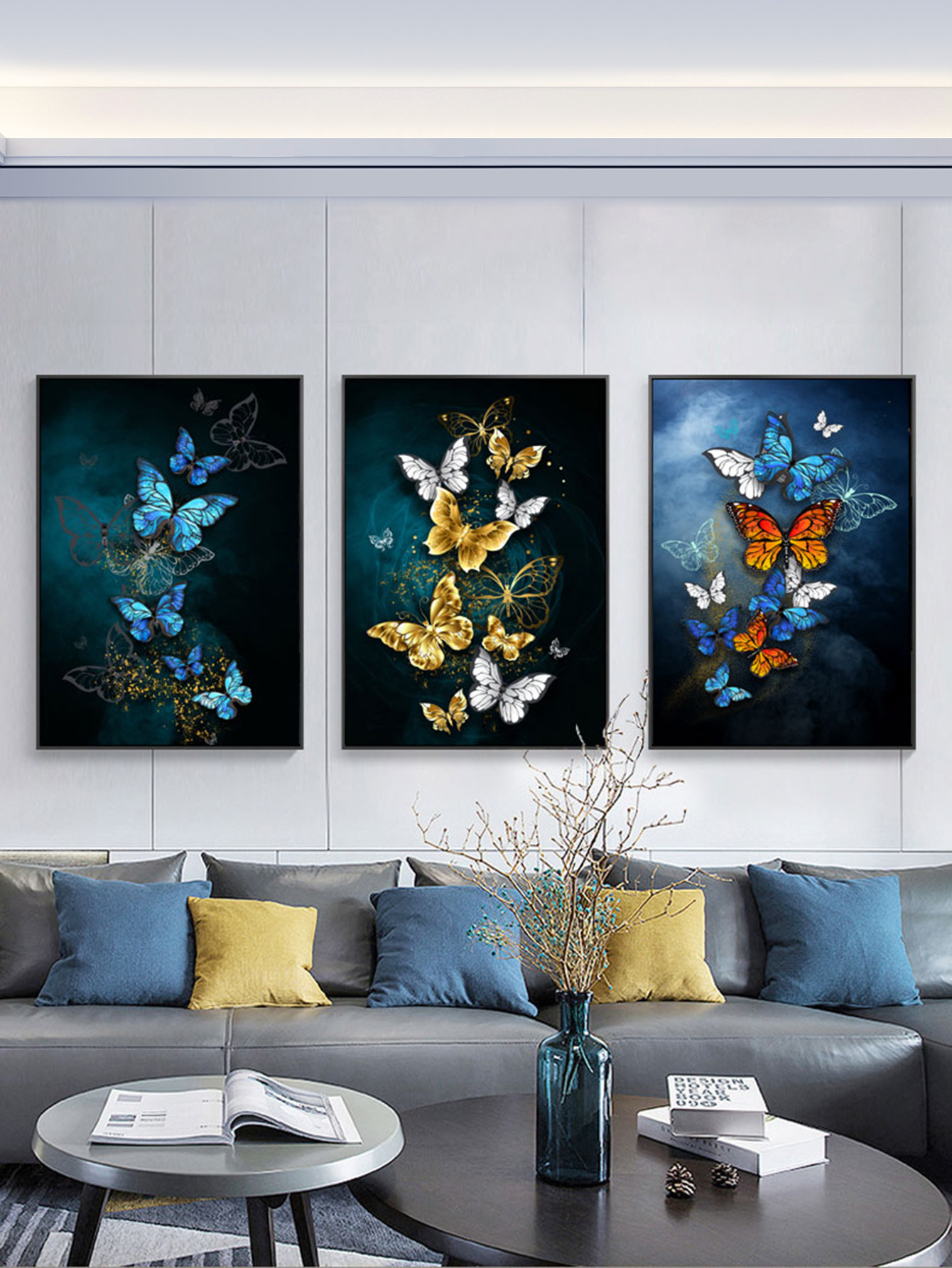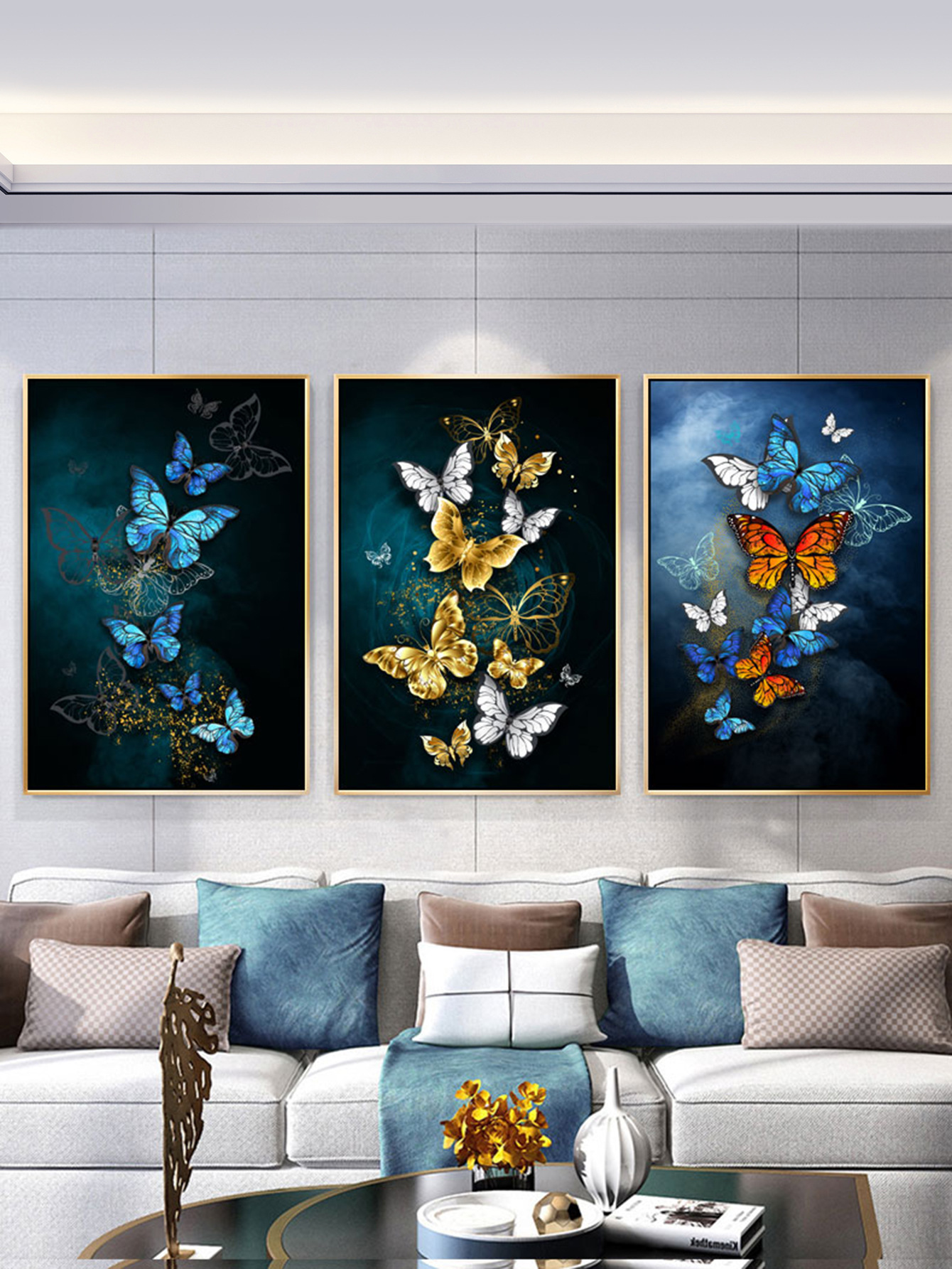 3PCs Restaurant Decoration Painting Butterfly Triple Self-Adhesive Painting Modern Fashion Dining Table Baground Wall Stier Hanging Painting Stier