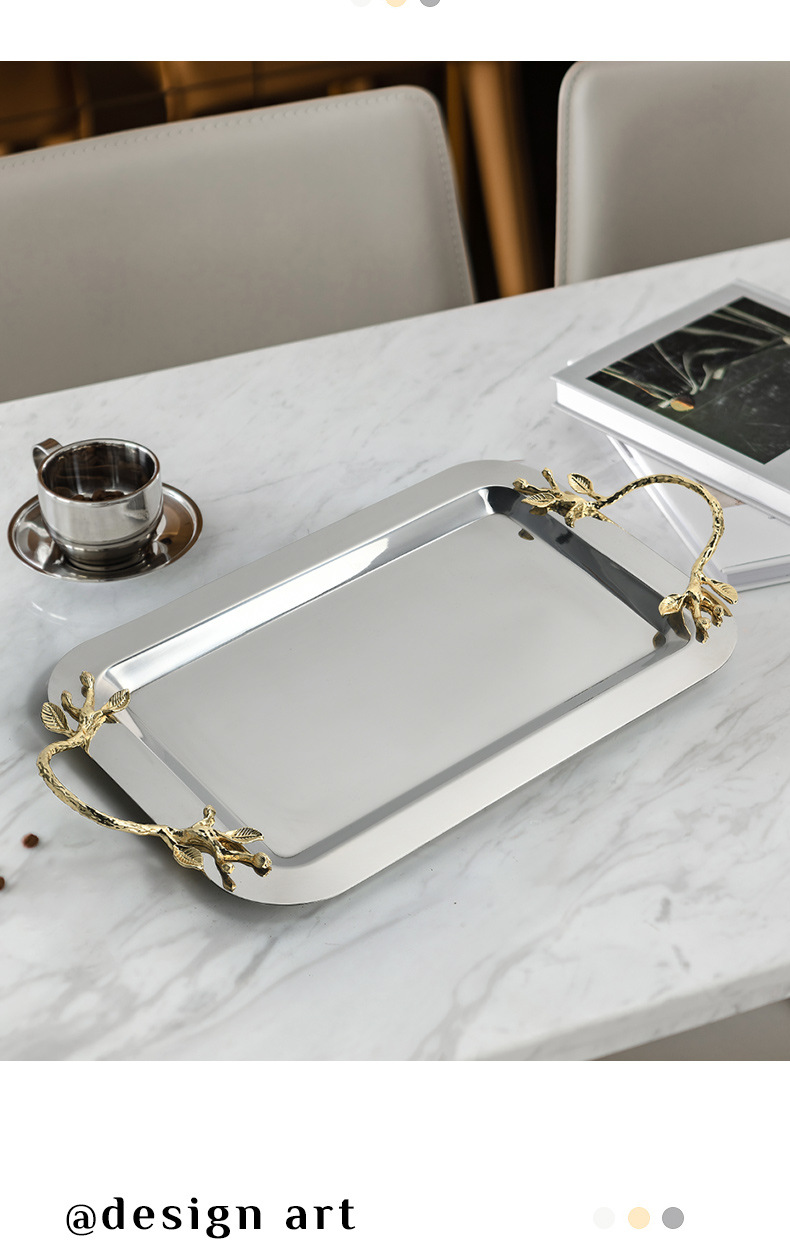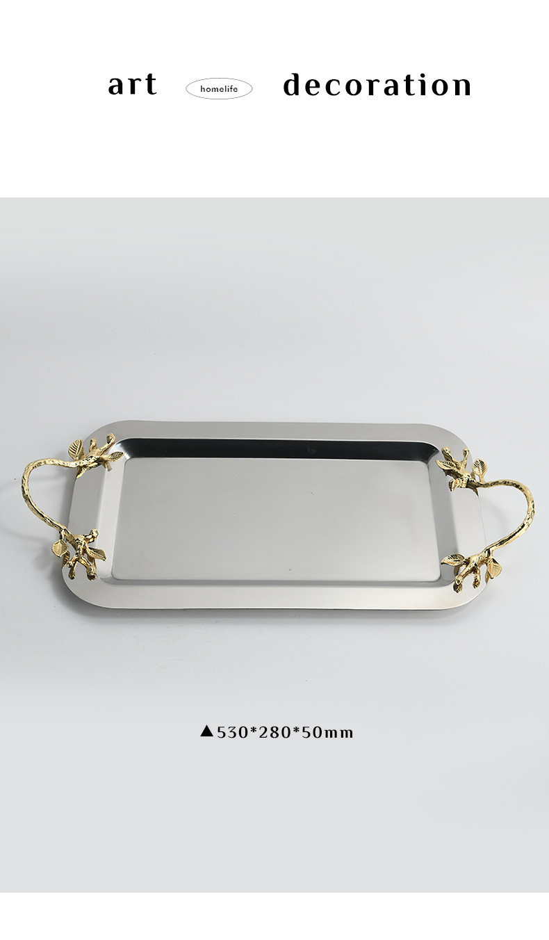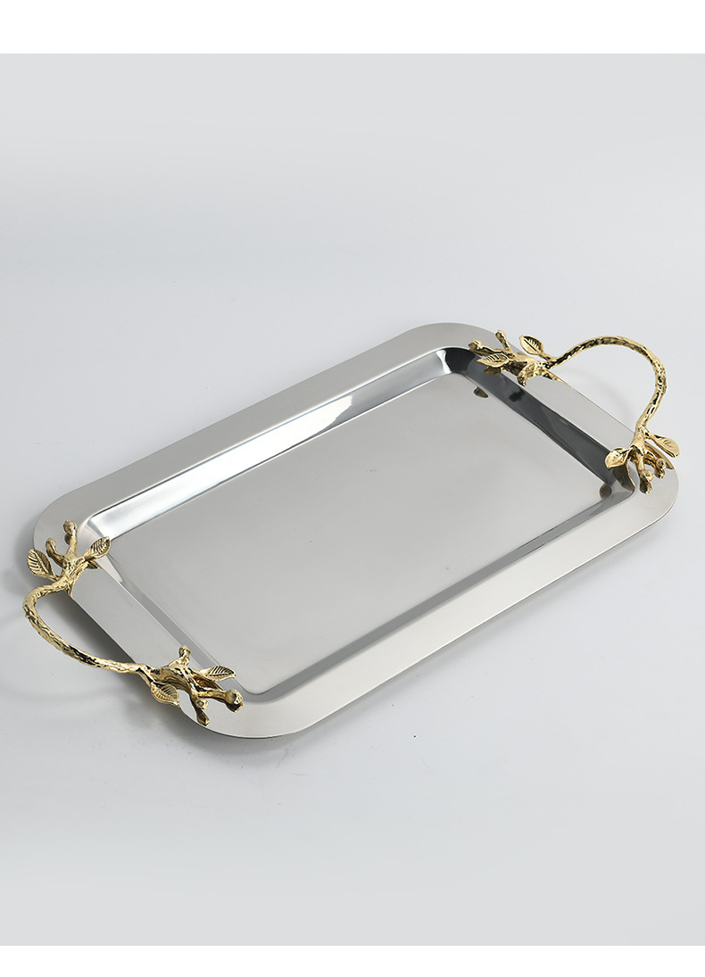 tea tray living room home high-grade rectangular tray water cup storage tea cup storage light luxury stainless steel fruit snack dish
