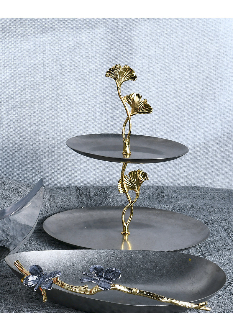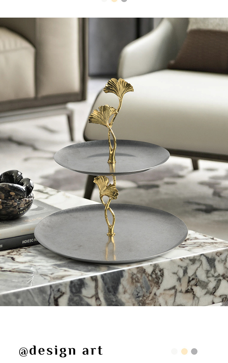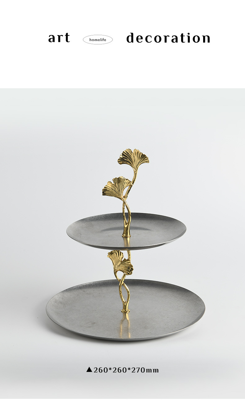 round double deck pallet stainless steel distressed light luxury metal ginkgo storage tray dim sum plate fruit plate living room coffee table