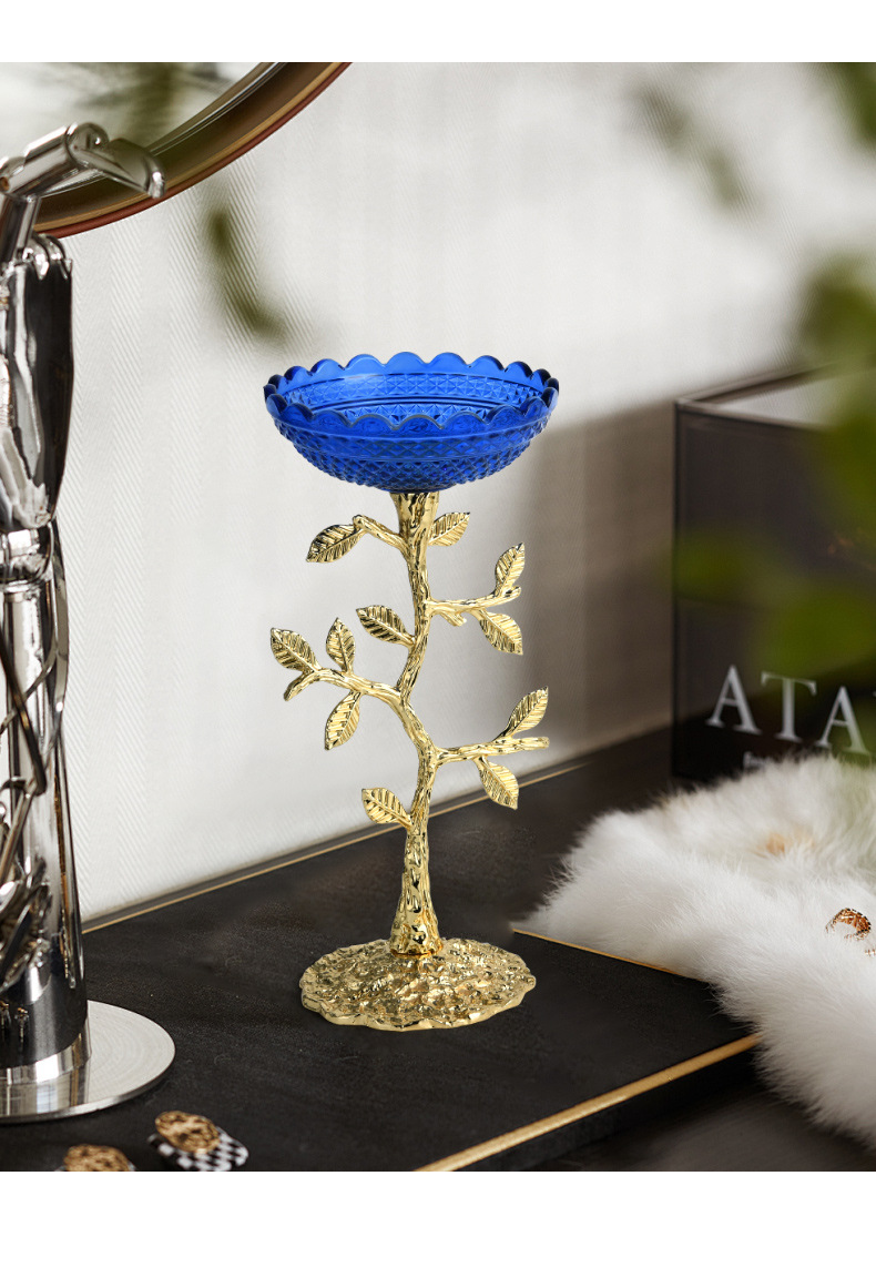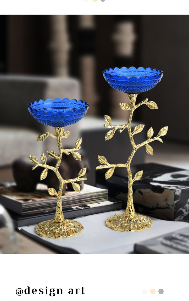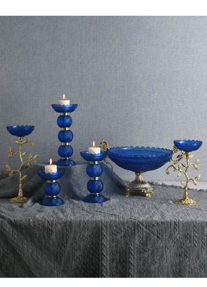 ins blue glass candlestick aromatherapy leaf candle photo decoration props photography desktop shooting decoration