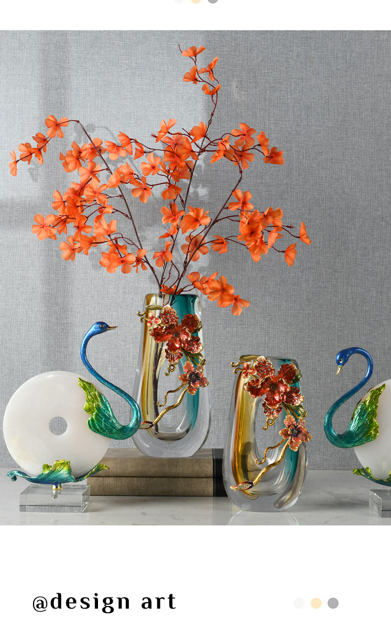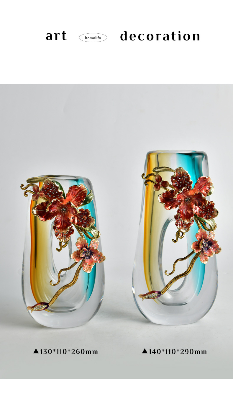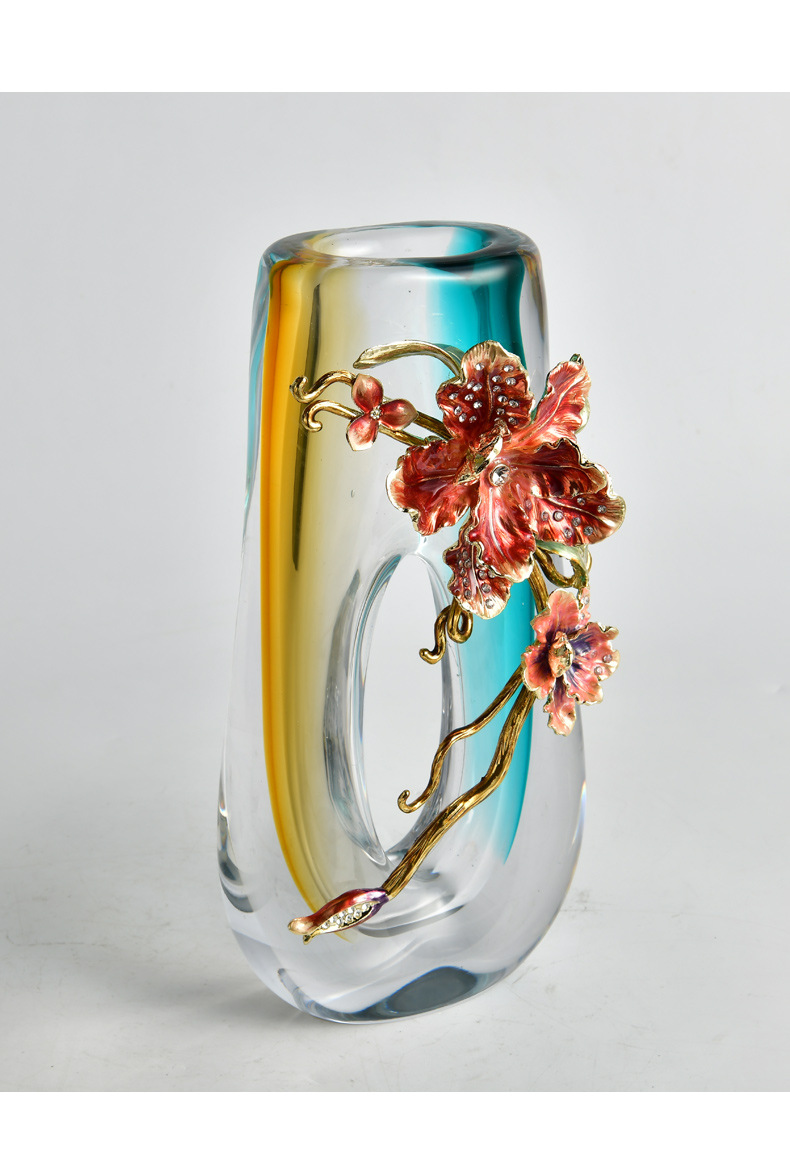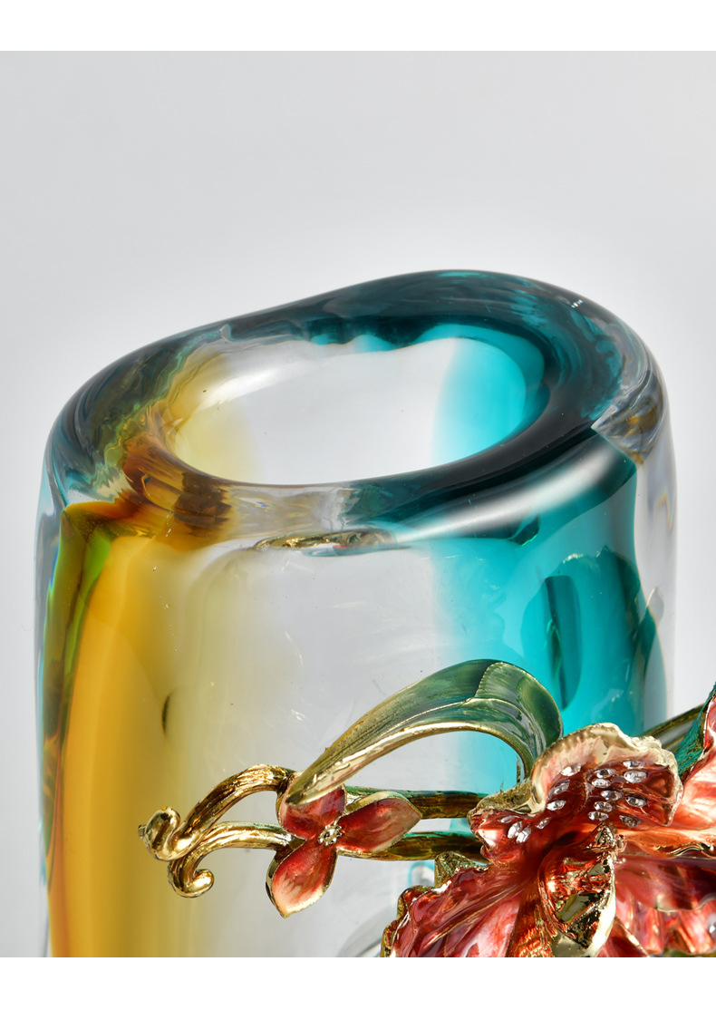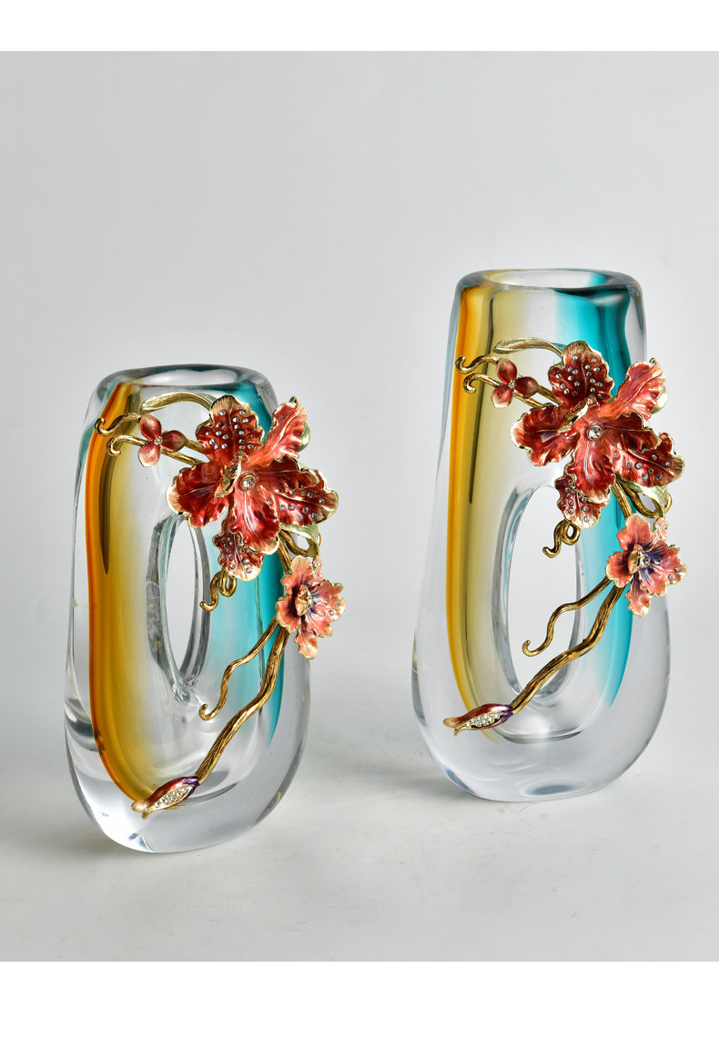 high-end enamel crafts modern light luxury art glass vase exquisite home art flower arrangement ornaments