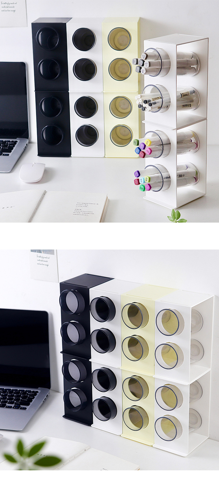 black double-grid round pen holder (48 boxes)