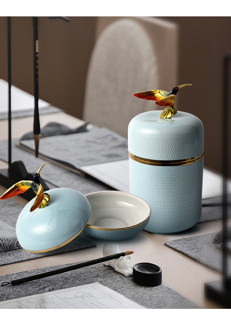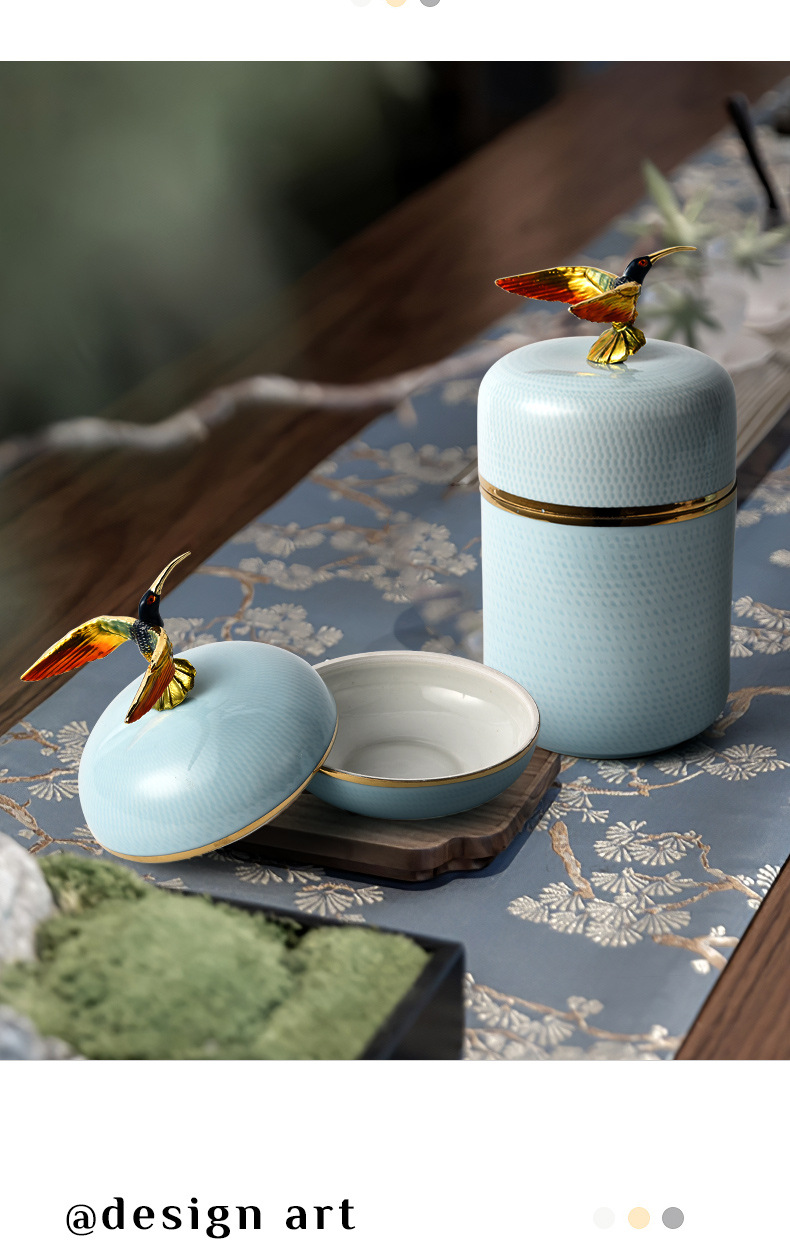 office tea table enamel color storage jar tea pot ceramic crafts decoration new chinese style entry luxury home ornament