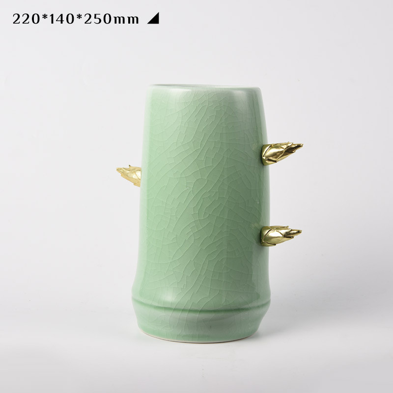 neo chinese style vase decoration ice crack ceramic vase of flower arrangement bamboo tea room tea table tea ceremony zen decoration