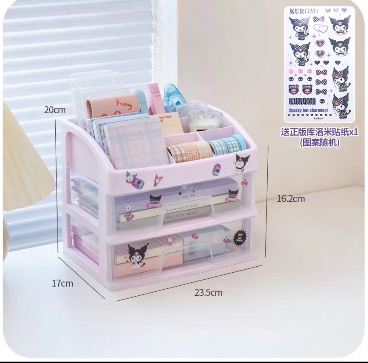 white layer + trapezoidal storage with stickers