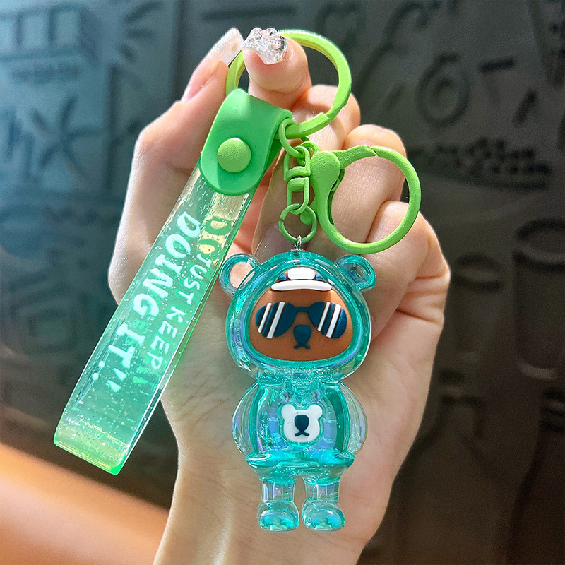 green-trendy cool transparent sunglasses bear pendant