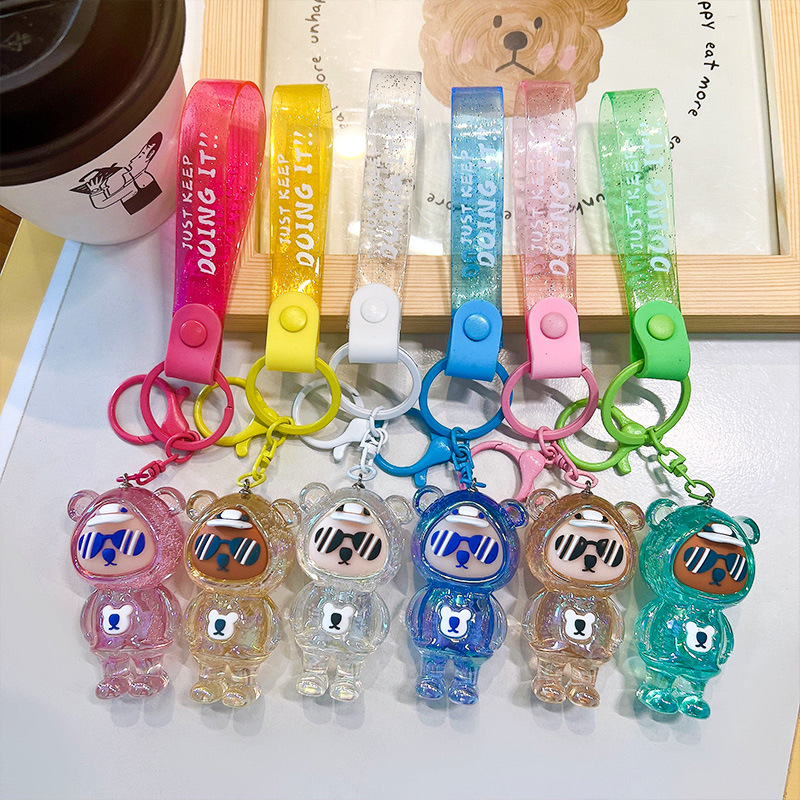 blue-trendy cool transparent sunglasses bear pendant