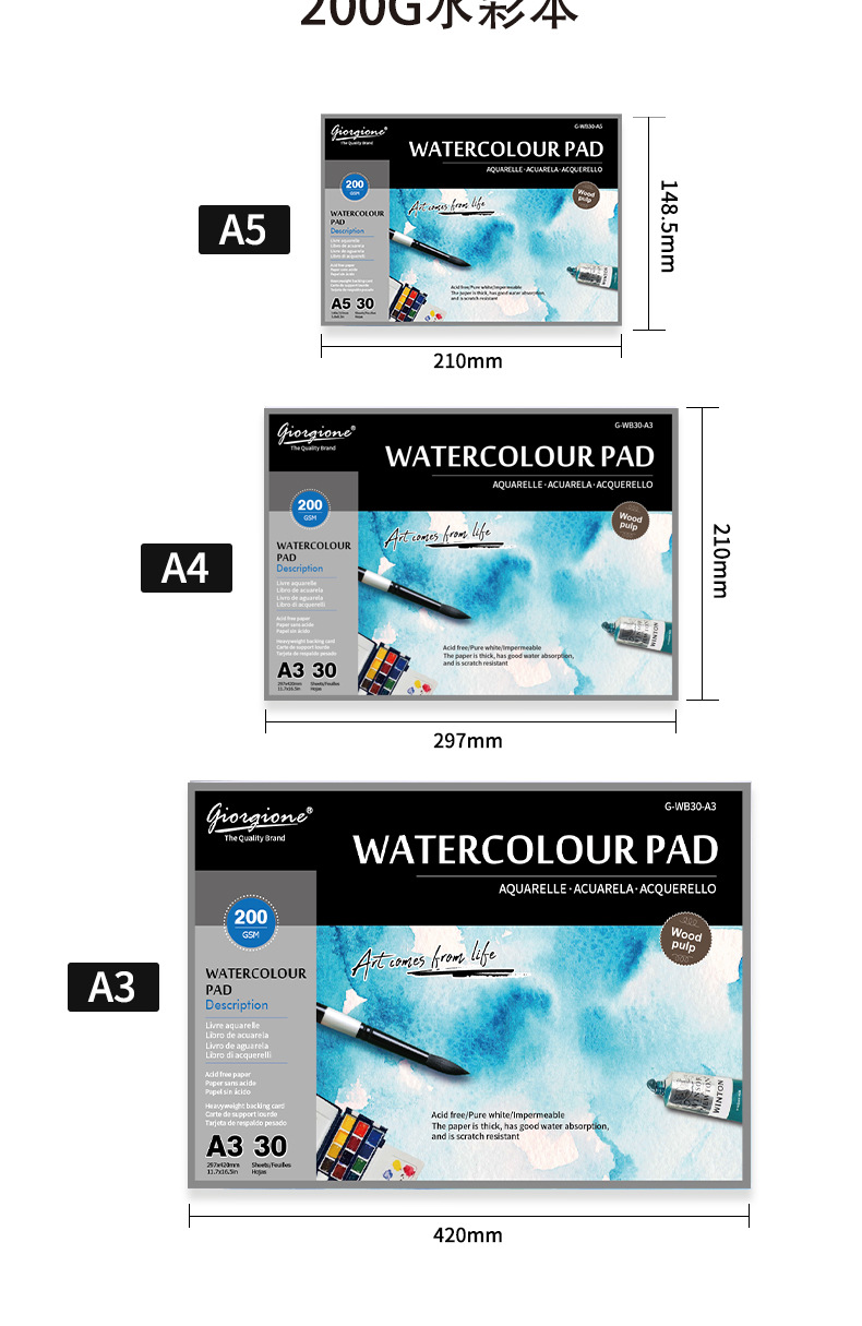 200g watercolor notebook a3
