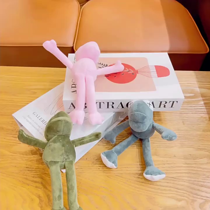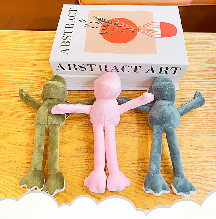 plush pink frog with long legs