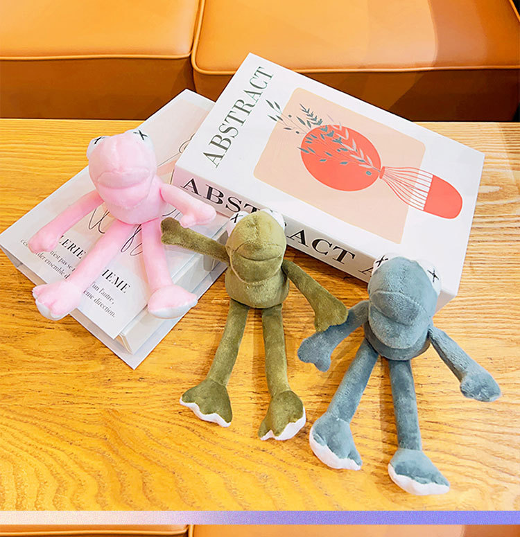 plush green frog with long legs
