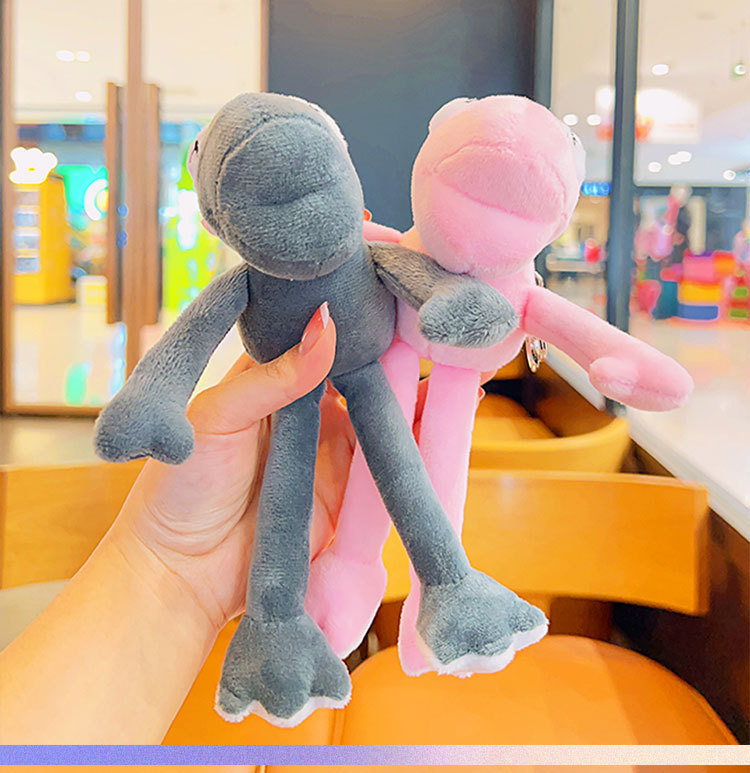 plush gray frog with long legs