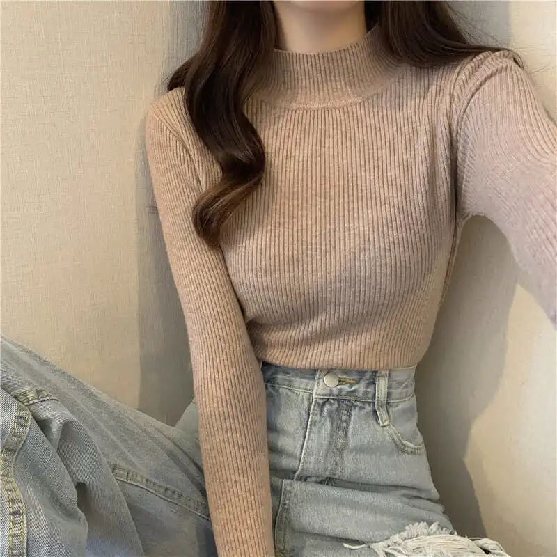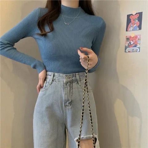 This item is a pair of thick and warm base layer half-high collar sweaters.