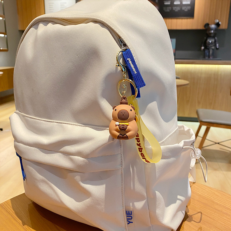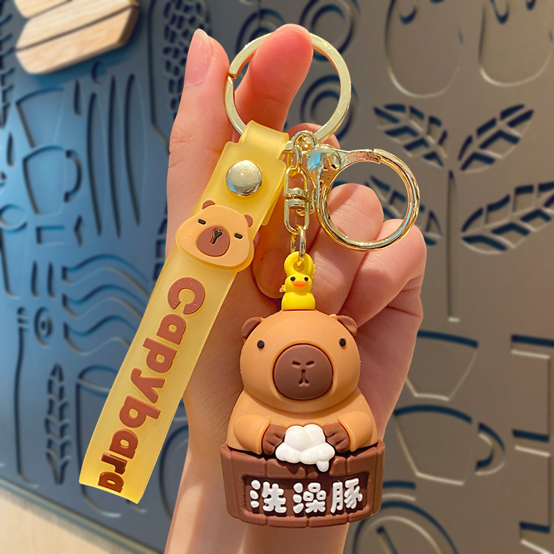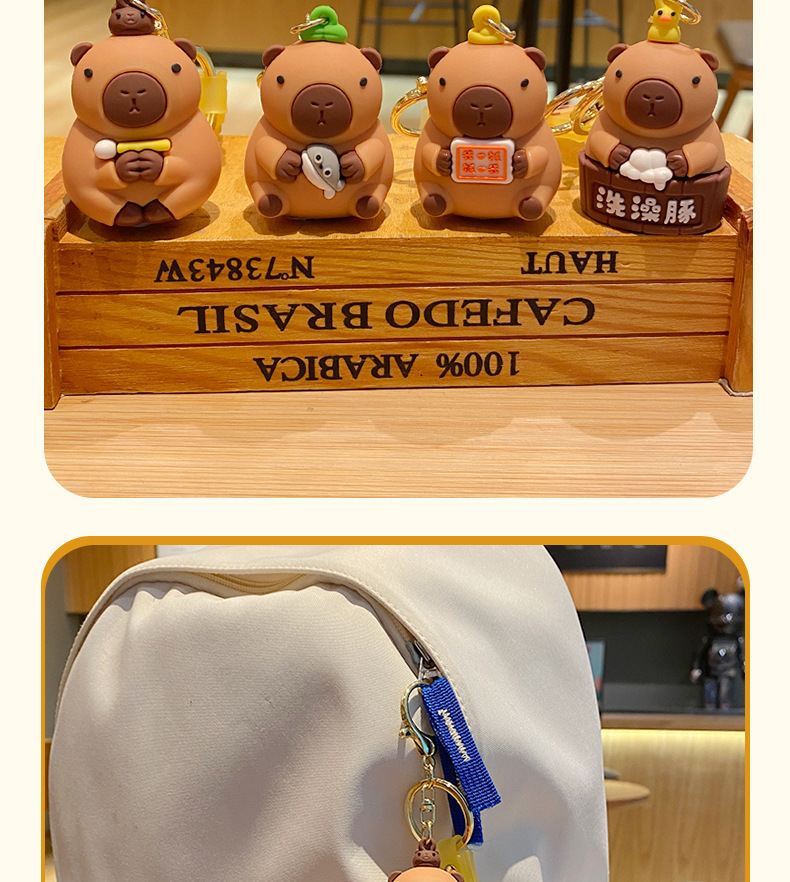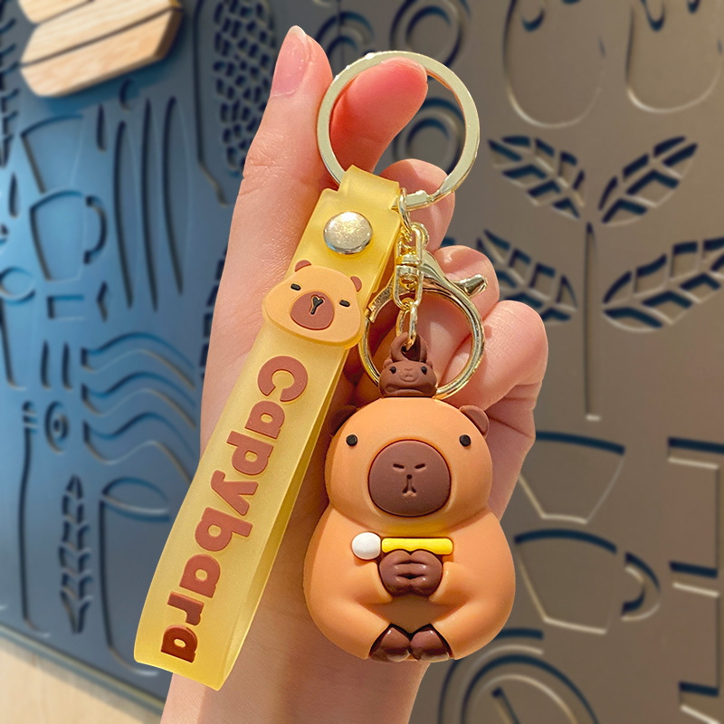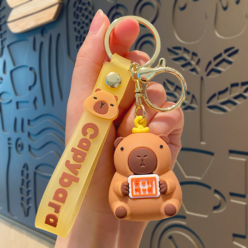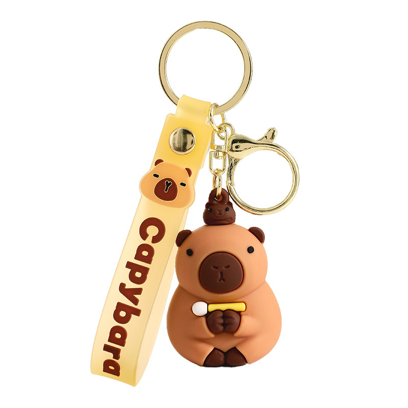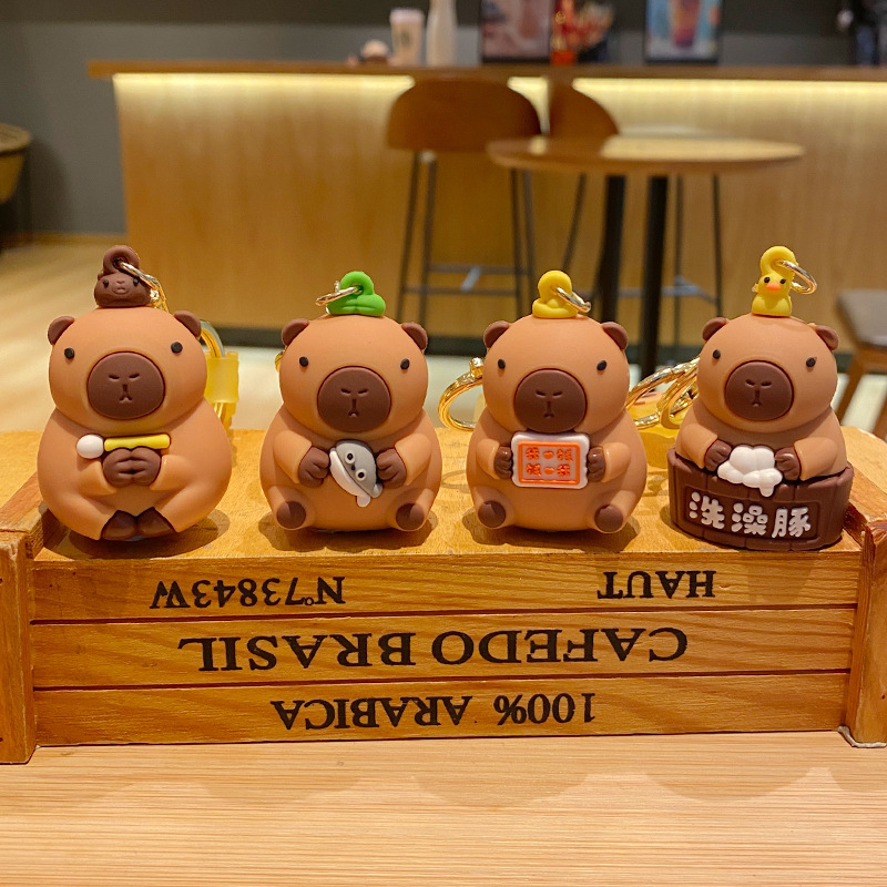 cute pet capabala-holding wooden fish