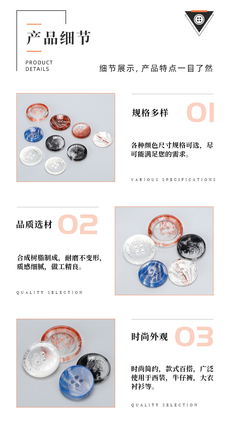 round versatile high-end men's and women's suit windbreaker coat sweater four-eye button trendy new resin transparent button