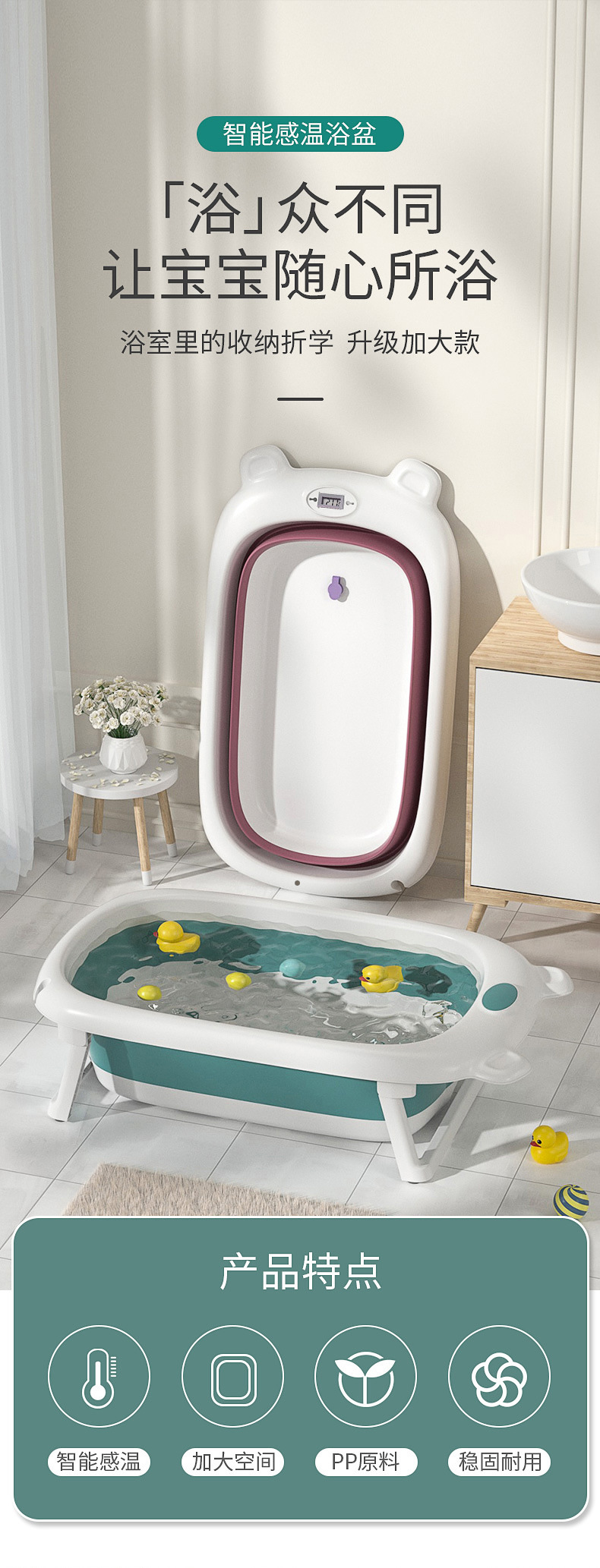 lonkids lelong cartoon baby bathtubs temperature-sensitive new baby bathtub sitting and lying folding large size bath bucket