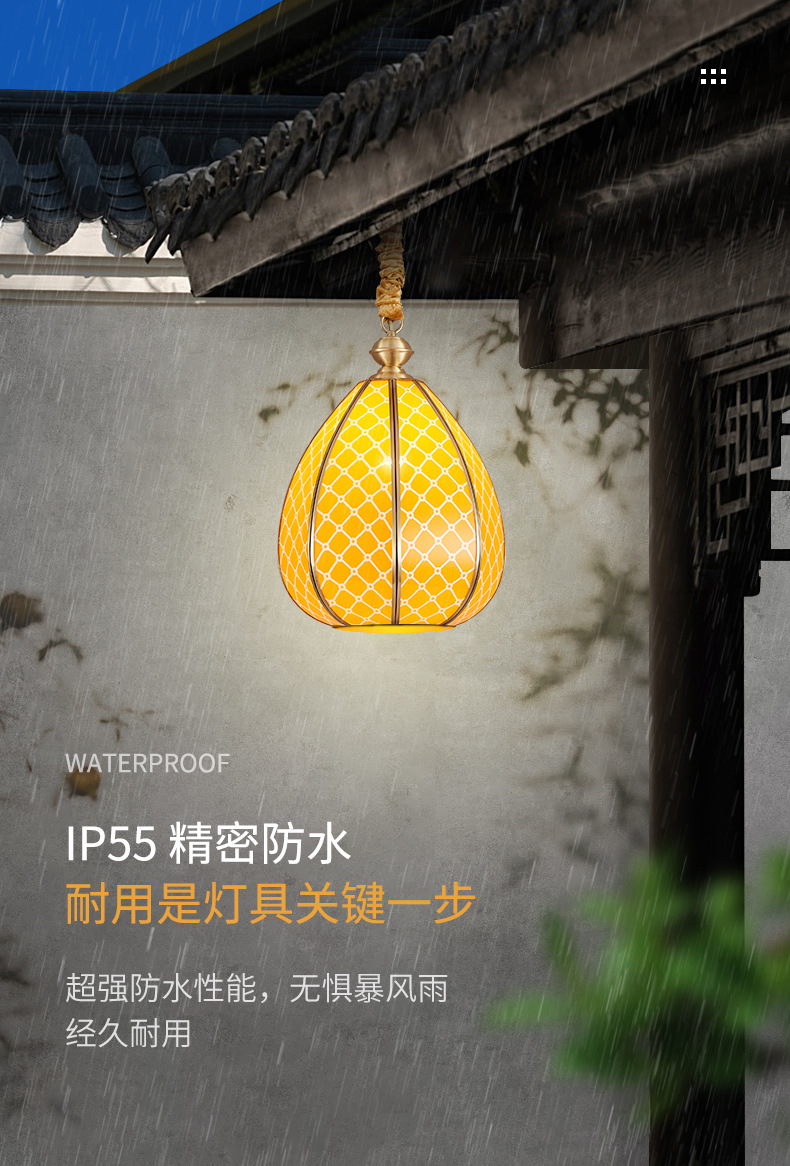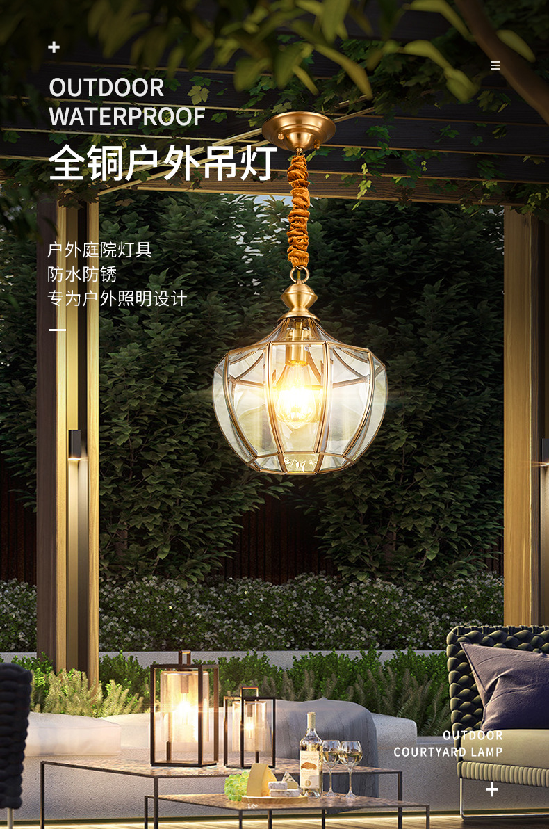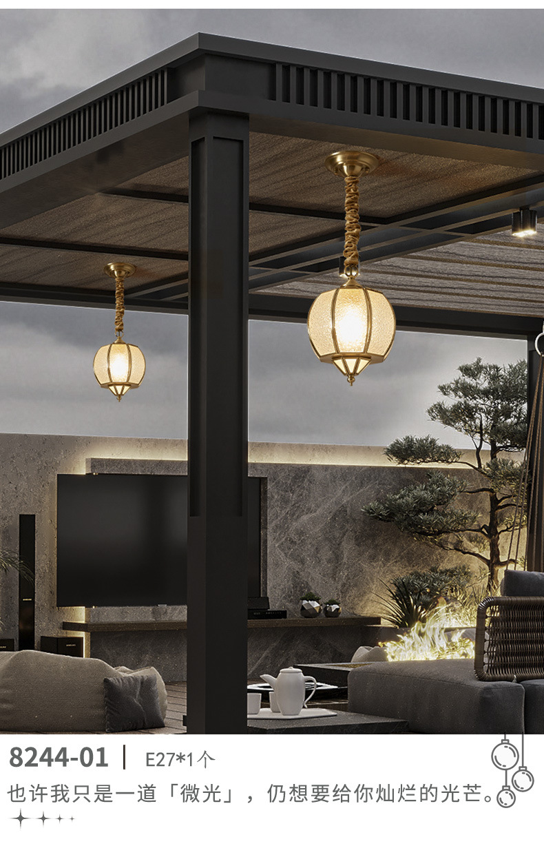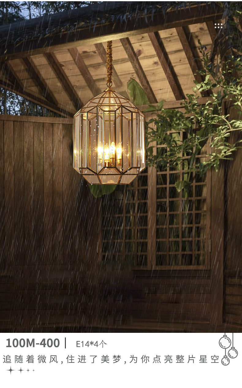 copper outdoor sunshine room chandelier outdoor pavilion garden lamp roof waterproof garden aisle villa door hanging lamp