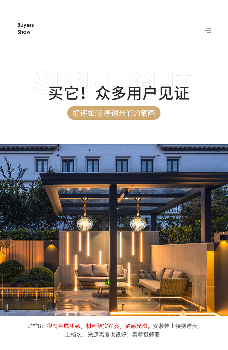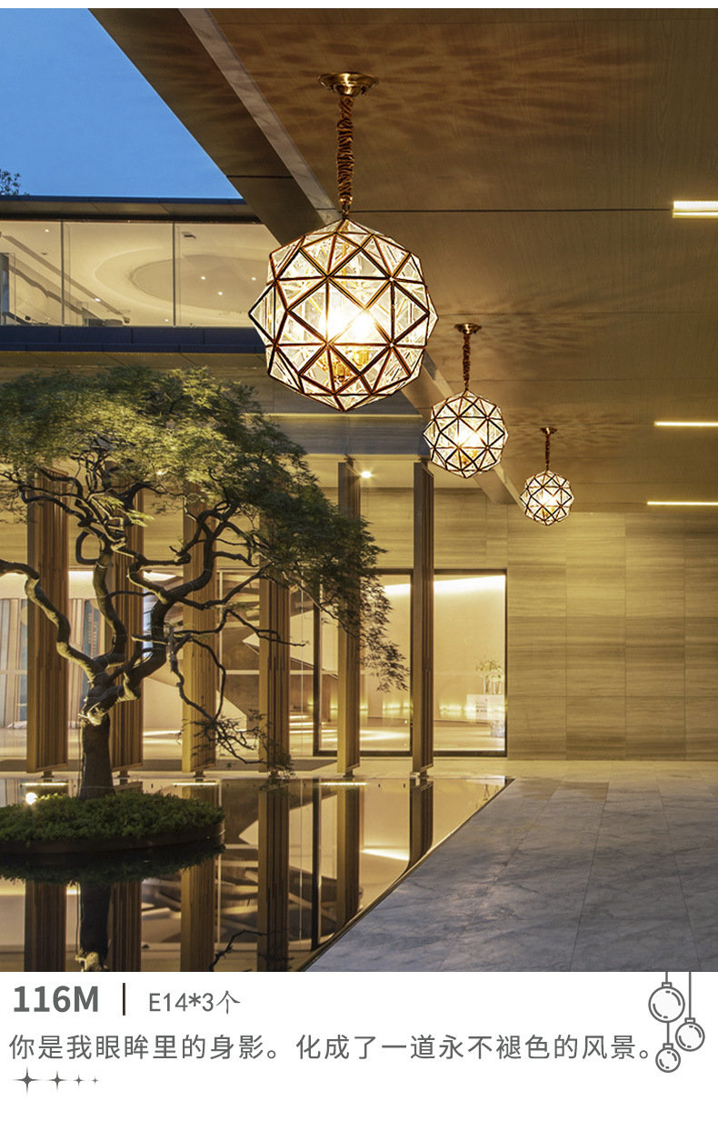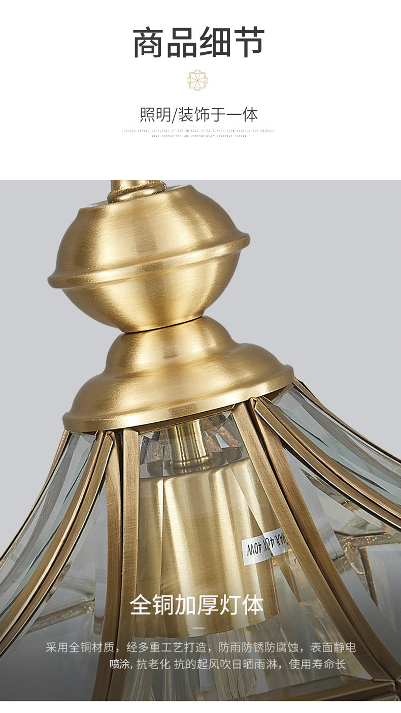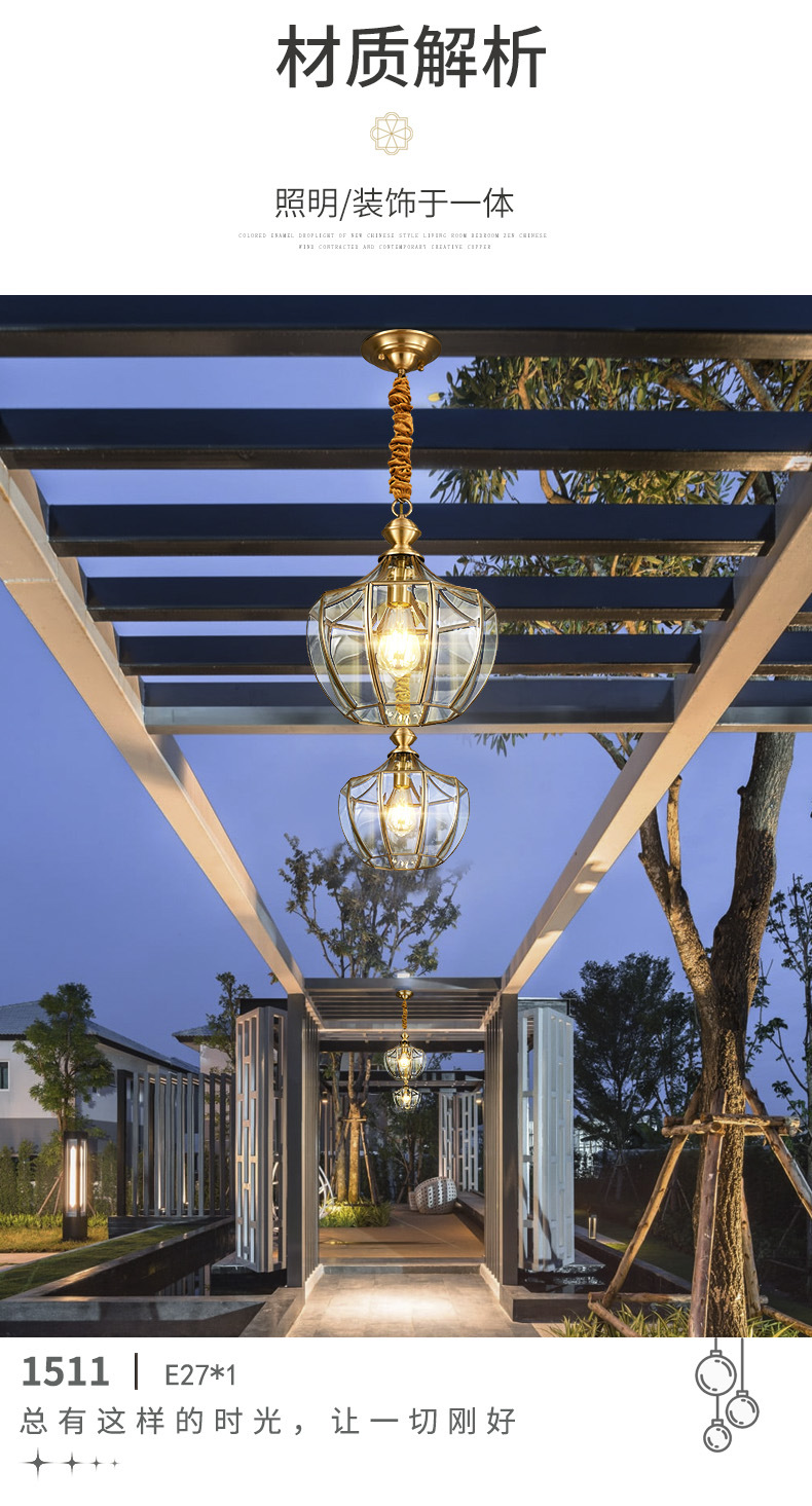 copper outdoor sunshine room chandelier outdoor pavilion garden lamp roof waterproof garden aisle villa door hanging lamp