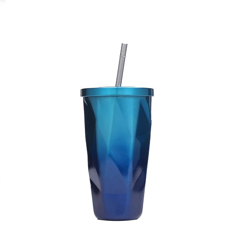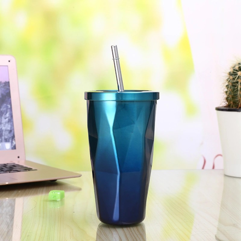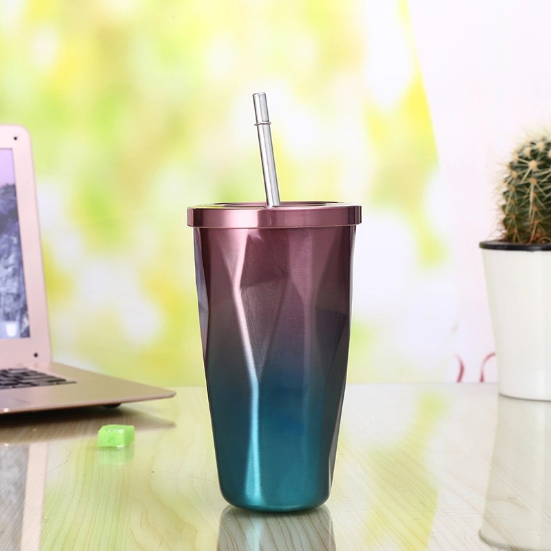 prismatic stainless steel vacuum cup cup with straw gradient 500ml double-layer stainless steel gift cup coffee cup 中文版