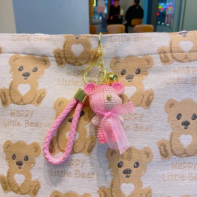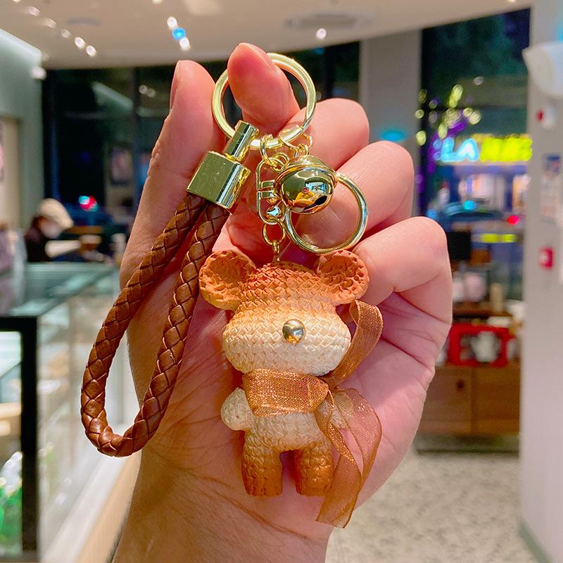 creative gradient wool bear resin keychain female couple little bear doll car key chain lovely bag pendant