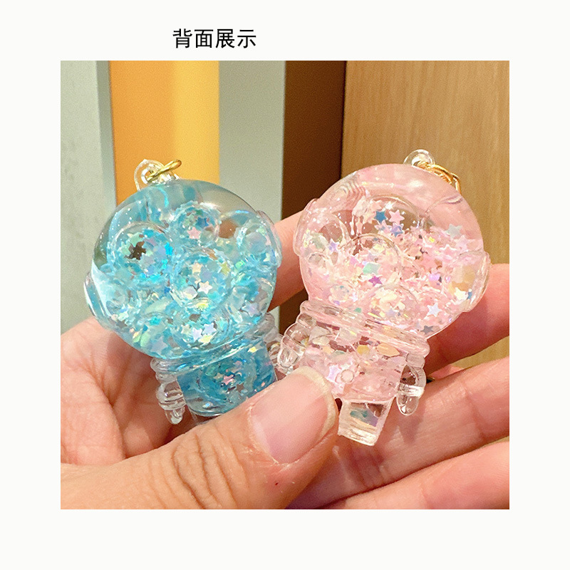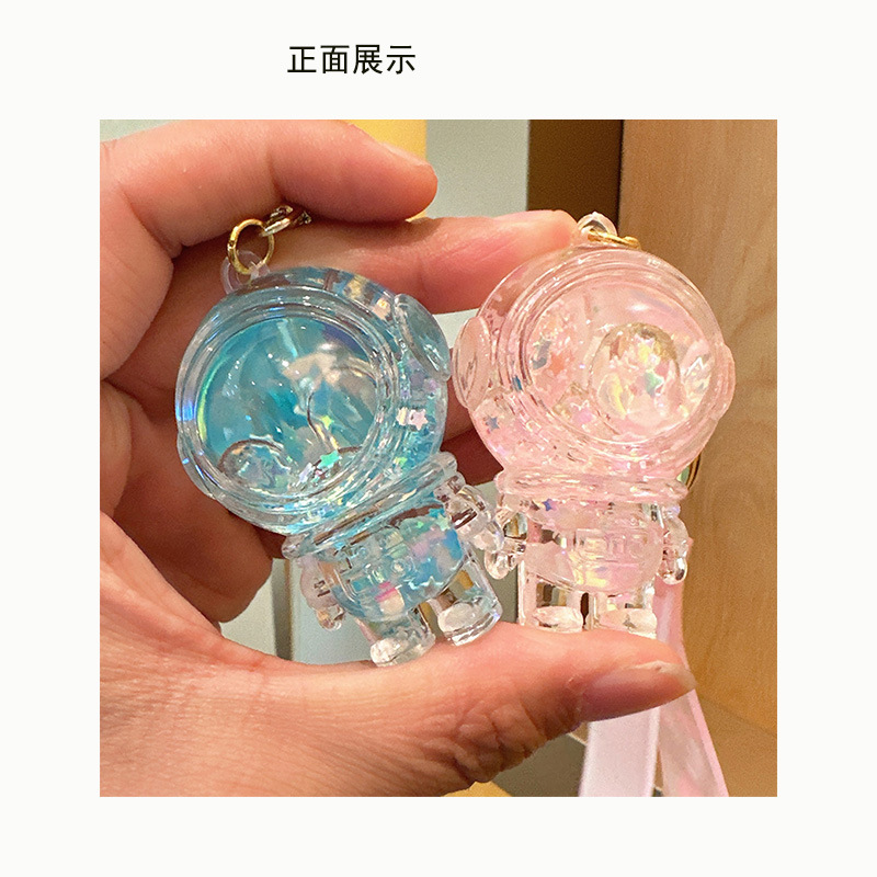 luminous transparent liquid spaceman keychain astronaut quicksand bottle pendant cartoon creative gift schoolbag pendant